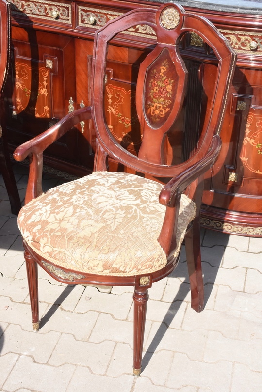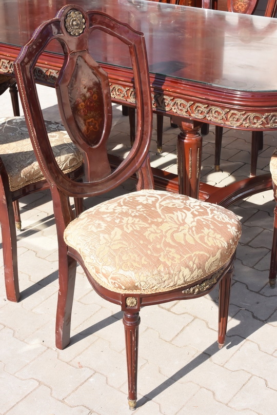 Wyjątkowy, autentyczny antyczny komplet jadalniany w stylu Ludwikowskim, pochodzący z francuskiej rezydencji, datowany na około 120 lat. To meble z historią – stworzone dla wnętrz o wysokim statusie, reprezentacyjnych i pełnych klasy.