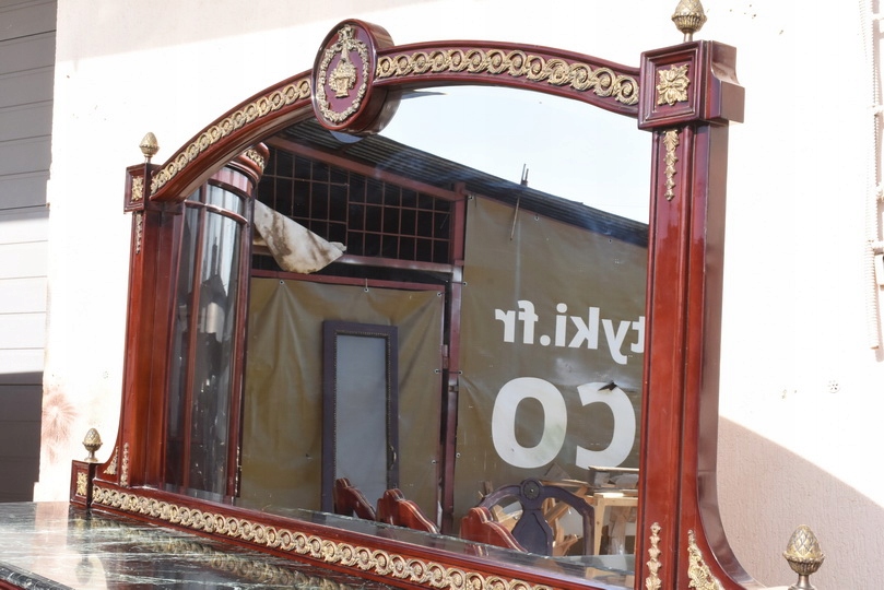 Imponujący pomocnik z dużym lustrem – element czysto pałacowy, który optycznie powiększa przestrzeń i nadaje wnętrzu luksusowy charakter.