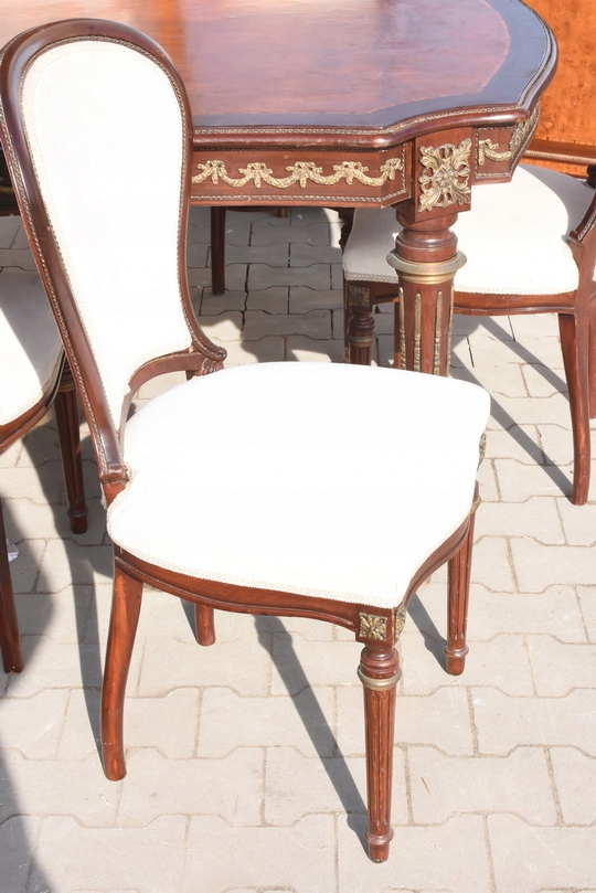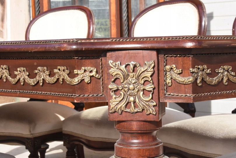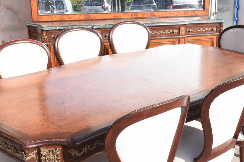Wyjątkowy, autentyczny antyczny komplet jadalniany w stylu Ludwikowskim, pochodzący z francuskiej rezydencji, datowany na około 120 lat. To meble z historią – stworzone dla wnętrz o wysokim statusie, reprezentacyjnych i pełnych klasy.