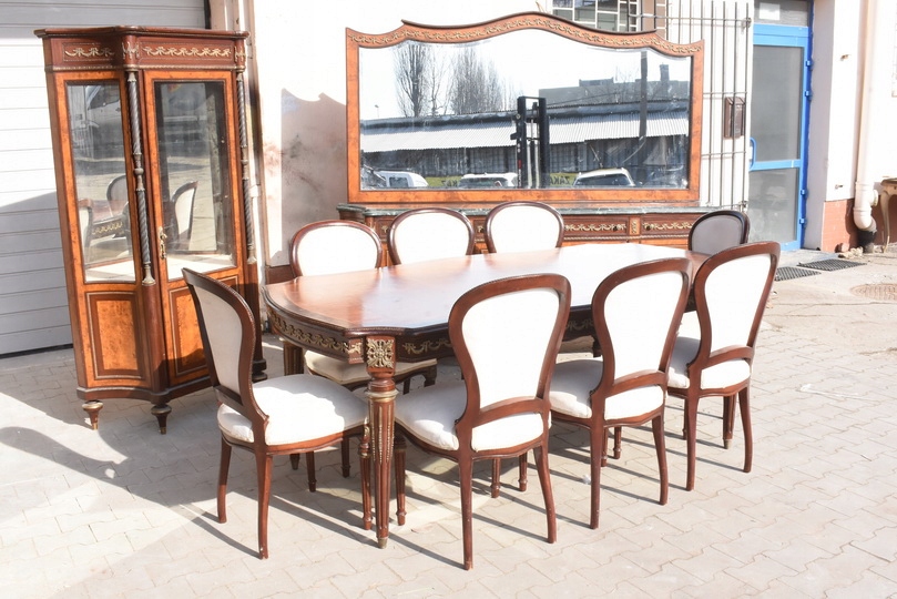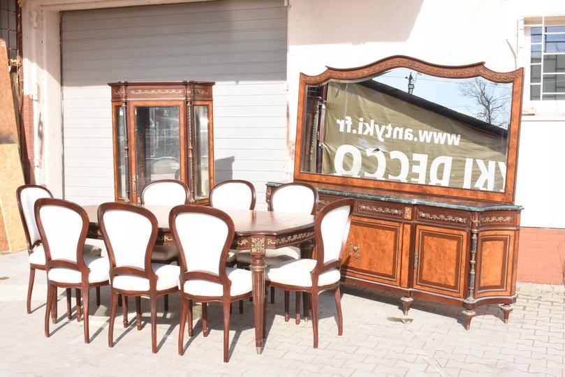 Stół + 8 Krzeseł + Witryna + Pomocnik z Lustrem | Francja | ok. 120 lat