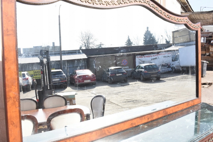 Imponujący pomocnik z dużym lustrem – element czysto pałacowy, który optycznie powiększa przestrzeń i nadaje wnętrzu luksusowy charakter.