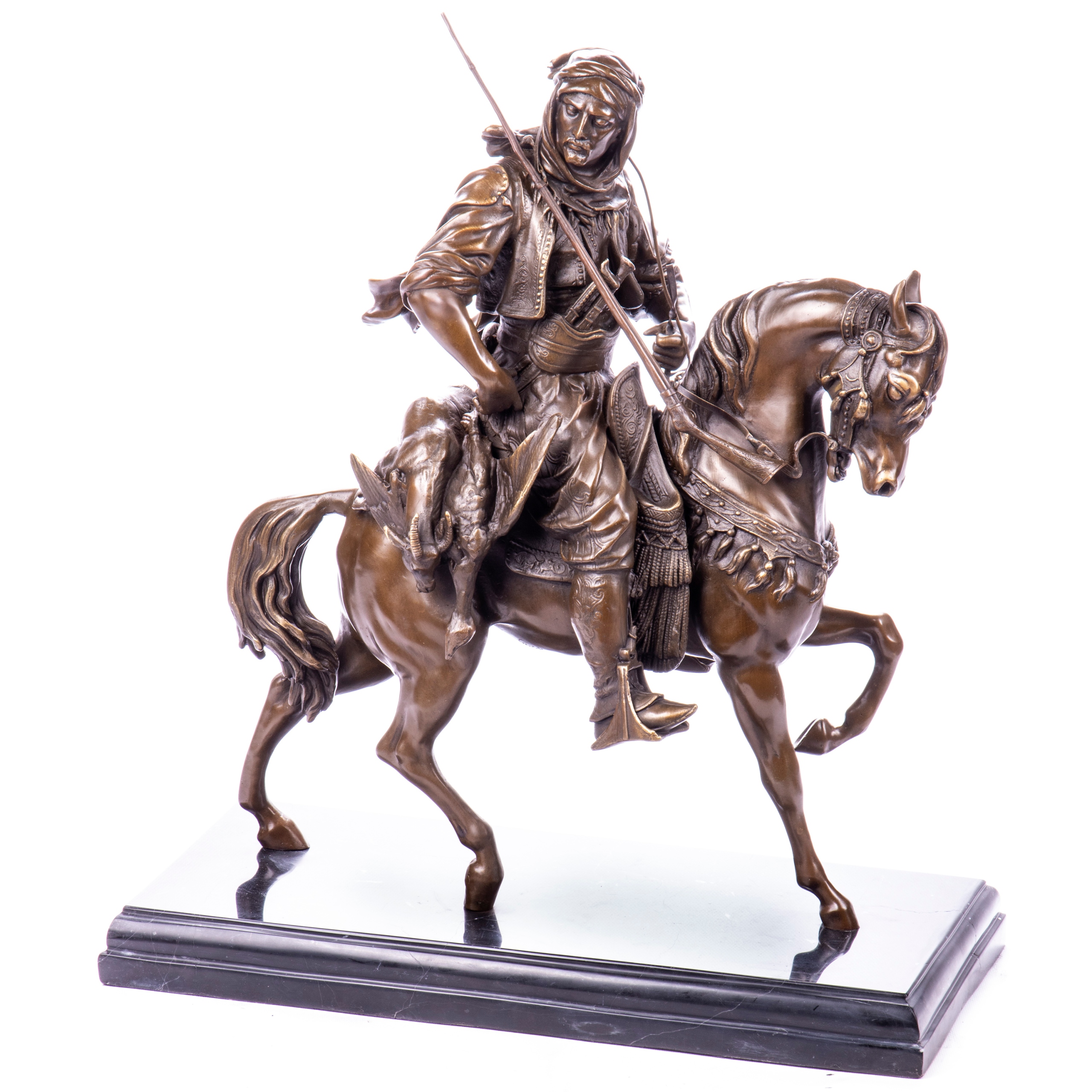 Arab z Bronią na Koniu – Duża Orientalna Rzeźba z Brązu