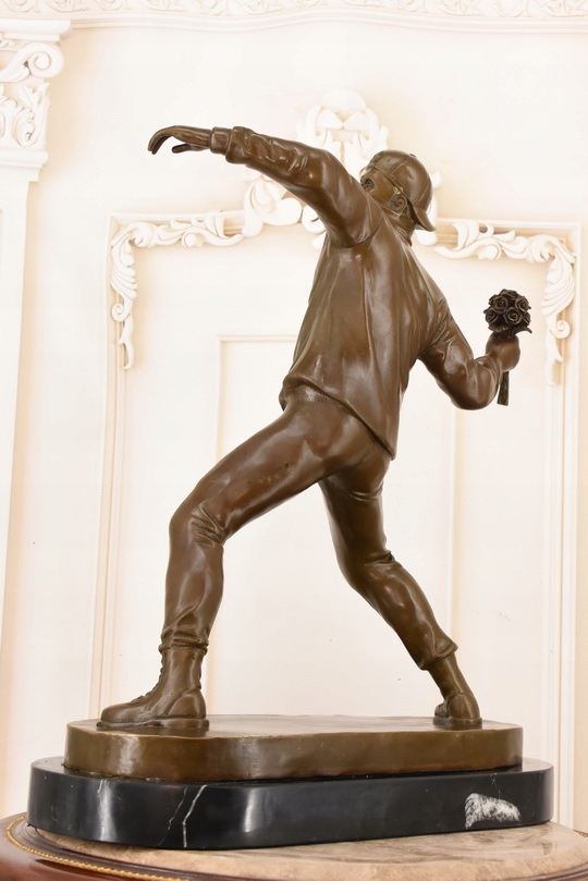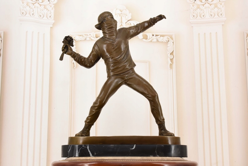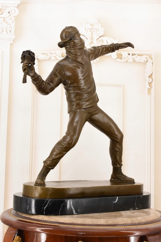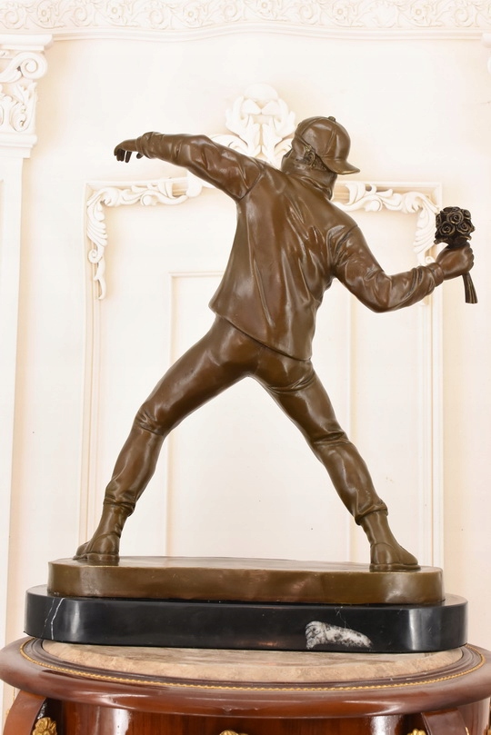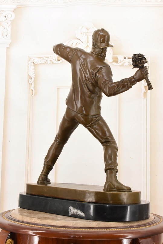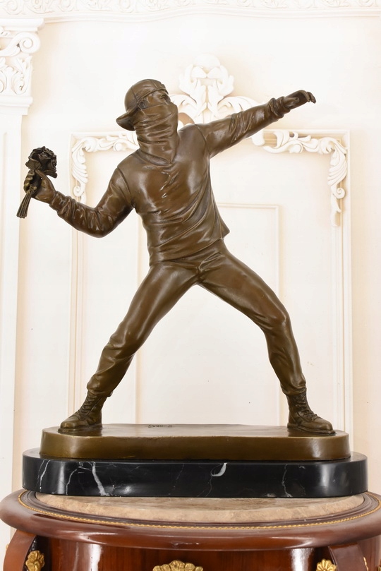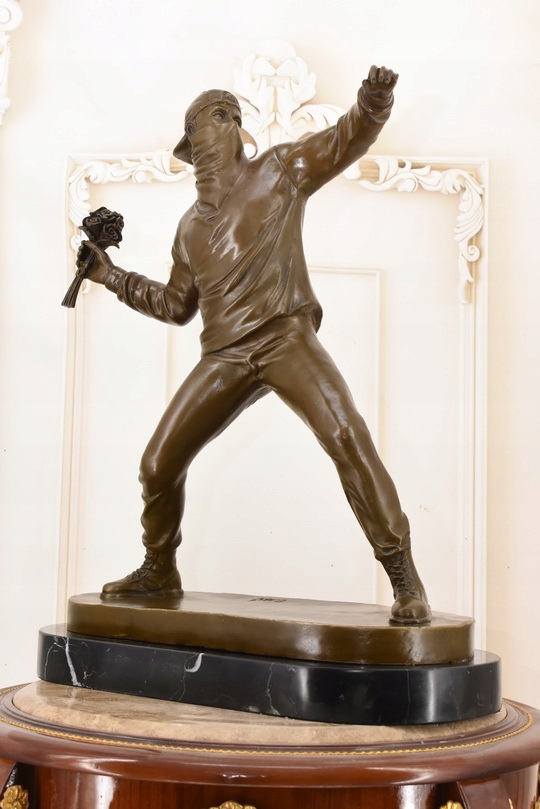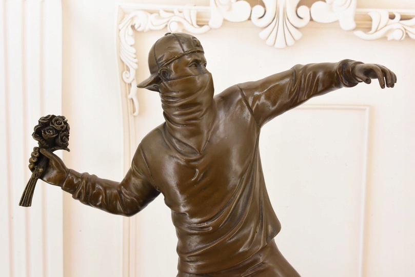 Rzeźba w Stylu Banksy – „Flower Thrower” – Figura z Brązu