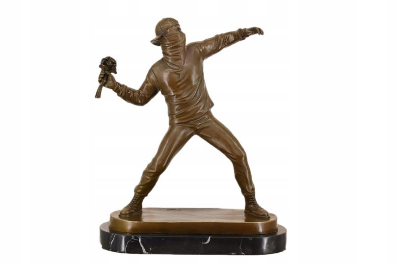Wyjątkowa rzeźba inspirowana kultowym dziełem Banksy’ego „Flower Thrower”, wykonana z trwałego brązu. Figura przedstawia charakterystyczną postać rzucającą kwiatem, symbolizującą pokój i bunt artystyczny. To unikatowy element dekoracyjny dla miłośników sztuki współczesnej i street artu.