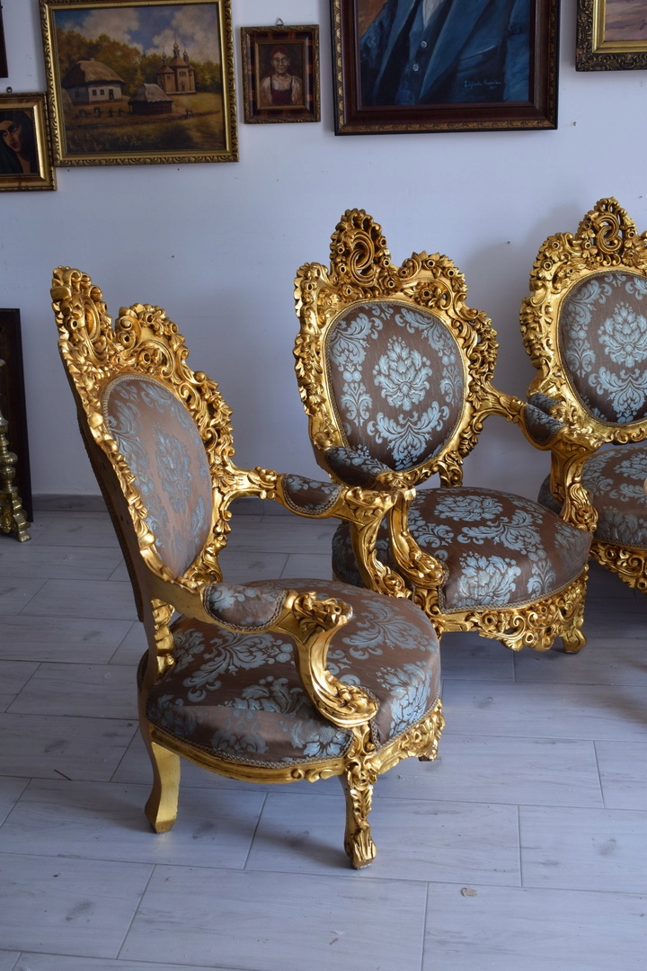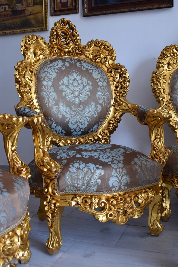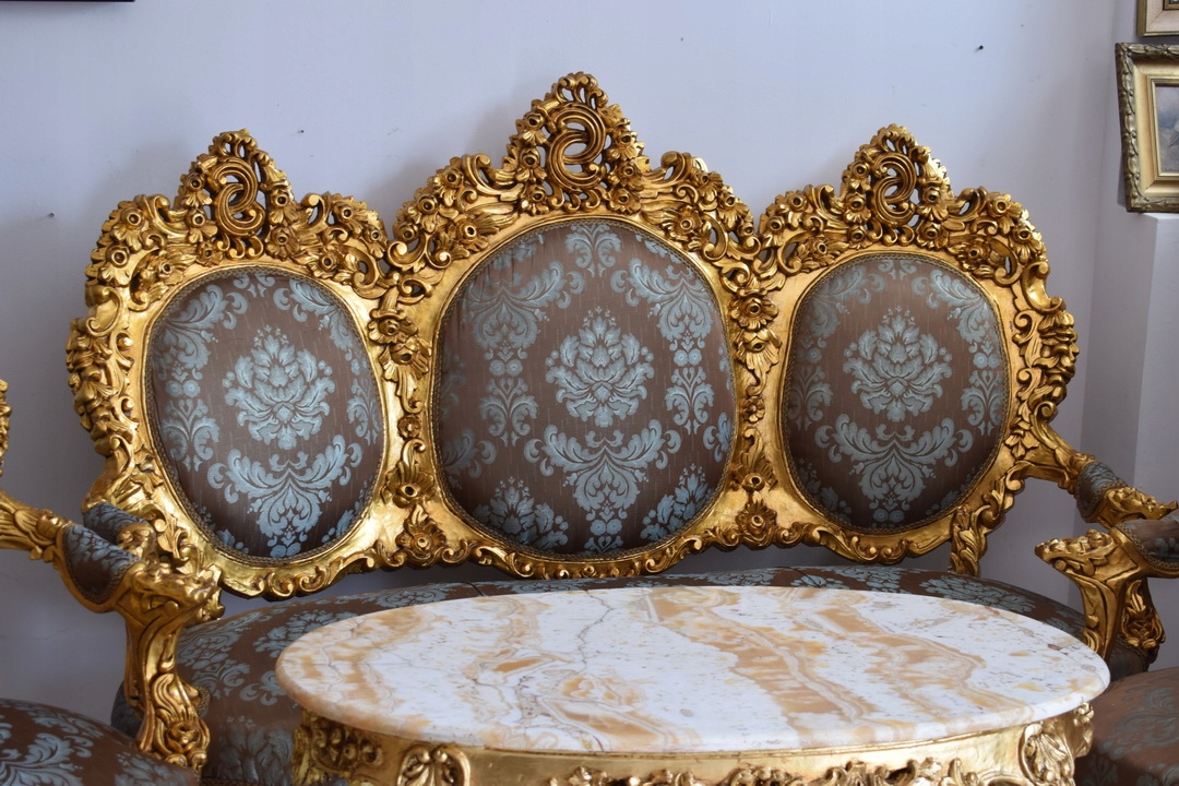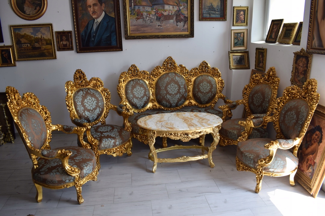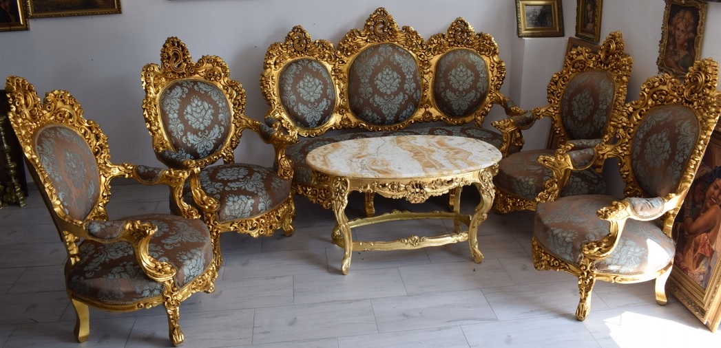 Strona główna » Kolekcje i sztuka » Design i Antyki » Meble » Komplety mebli » Barokowy Komplet Wypoczynkowy Wypoczynek - Sofa + 4 Fotele + Stół KWIATY