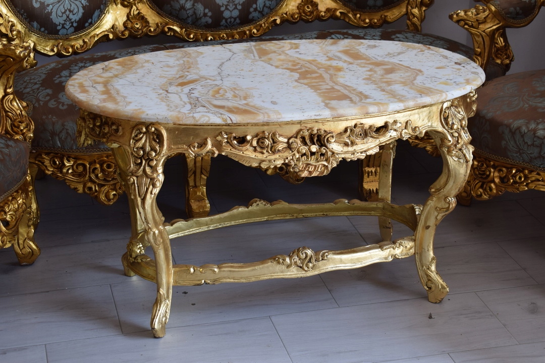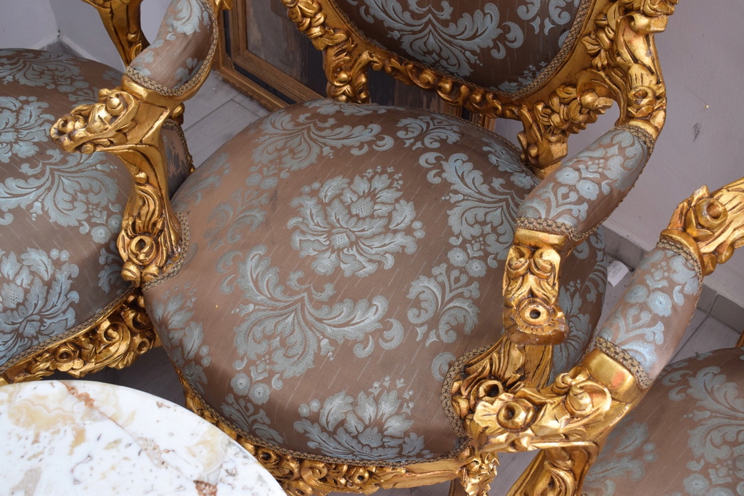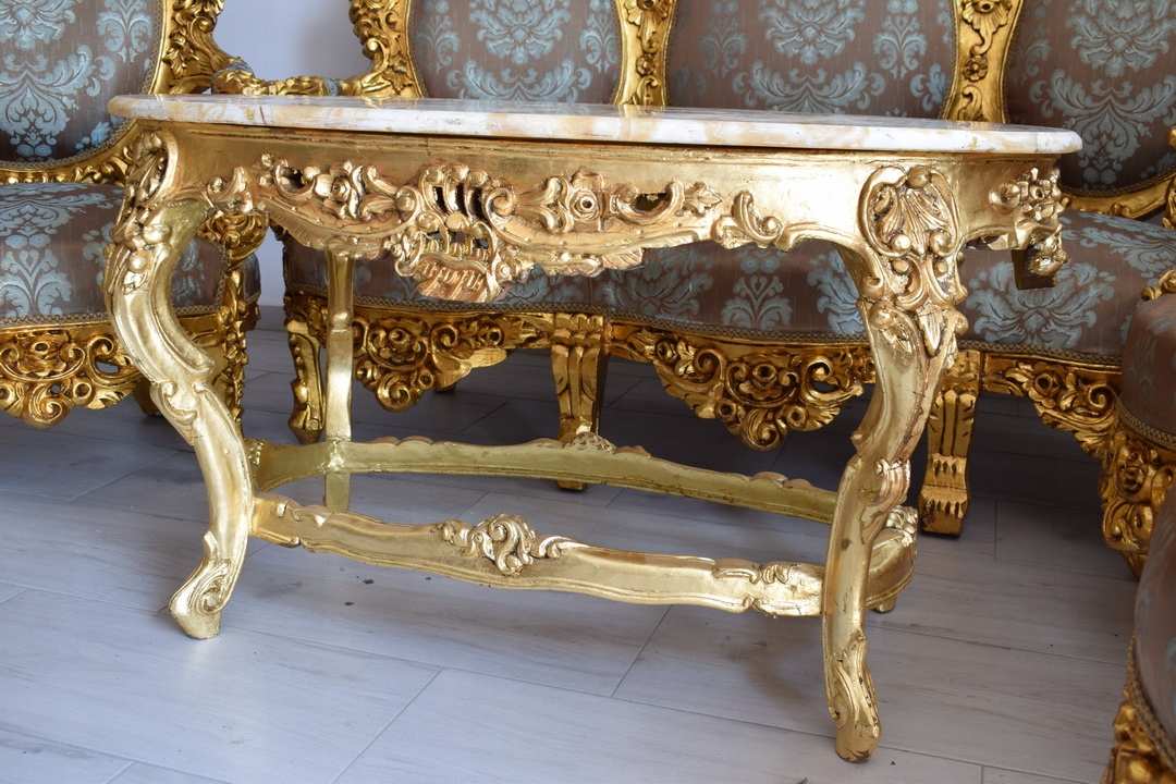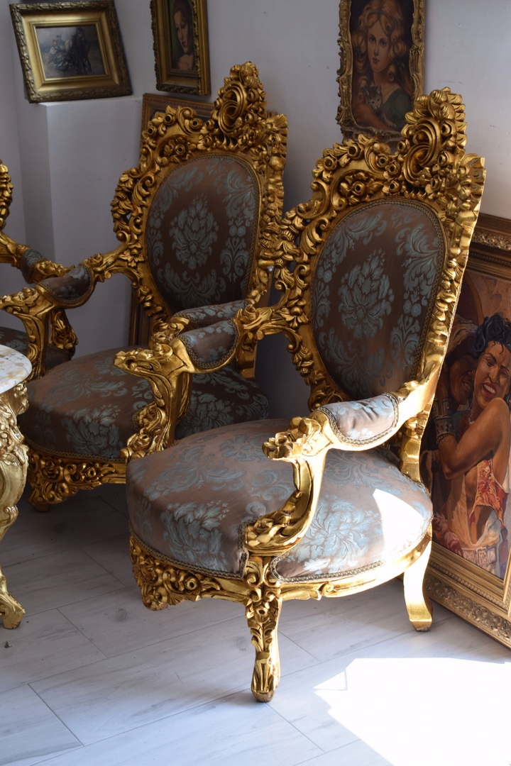 Strona główna » Kolekcje i sztuka » Design i Antyki » Meble » Komplety mebli » Barokowy Komplet Wypoczynkowy Wypoczynek - Sofa + 4 Fotele + Stół KWIATY