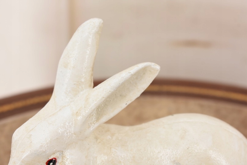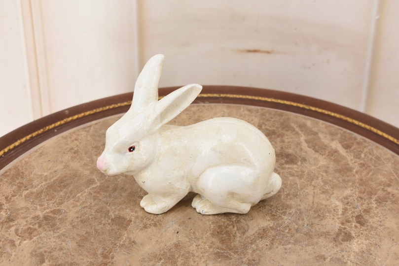 Biały Królik - Żeliwna stara figura - Zając - Dekoracja Ozdoba
