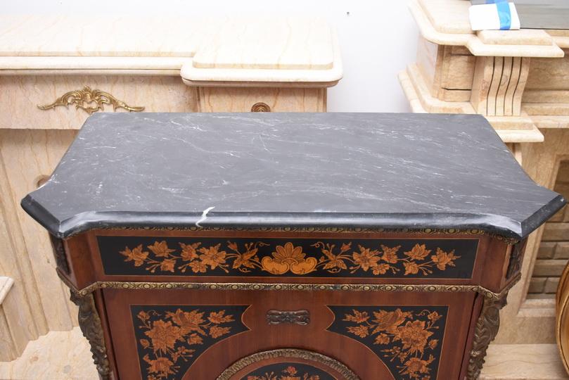 Całość zwieńczona solidnym blatem z naturalnego marmuru, który dodaje meblowi szlachetności, podkreśla jego prestiżowy wygląd oraz zwiększa walory użytkowe.