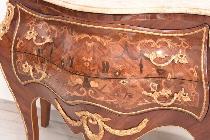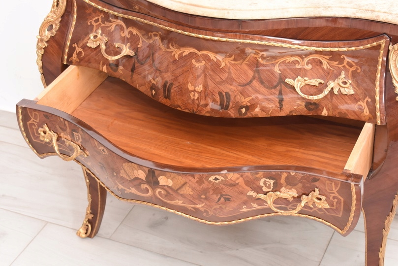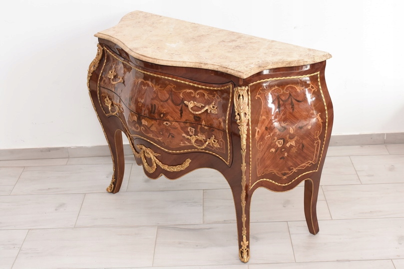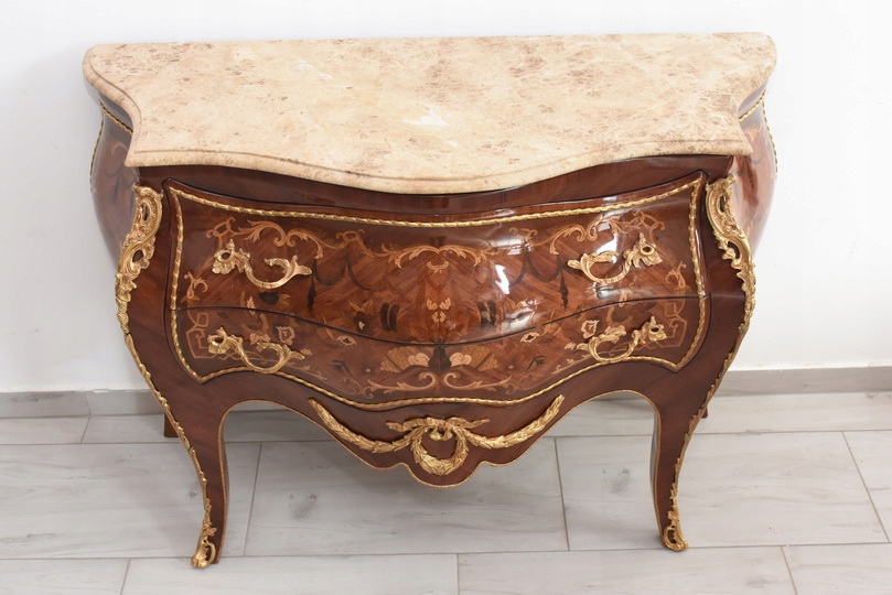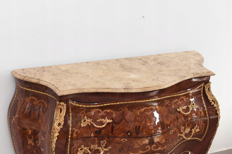 Liczne okucia z brązu - blat marmurowy ciężki.