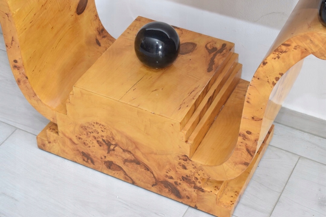 • Kształt: Gięte drewno nadaje stolikowi unikalny kształt i płynne linie, które są charakterystyczne dla stylu Art Deco.