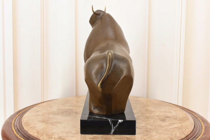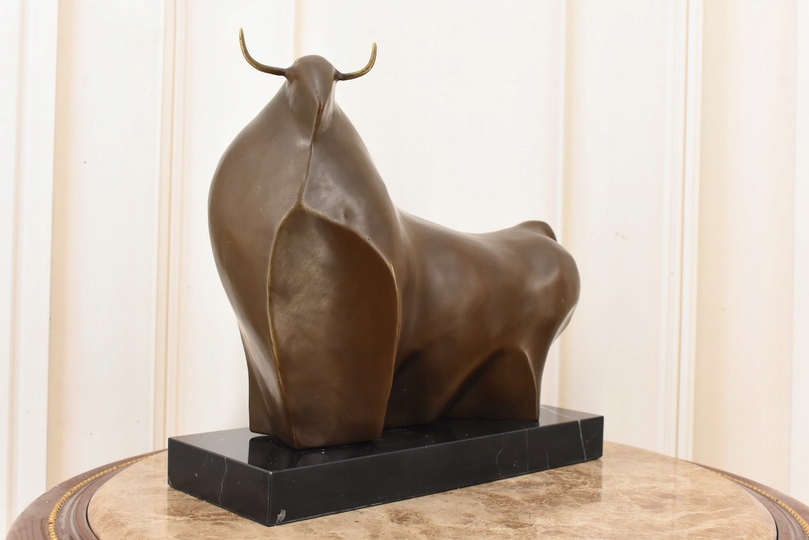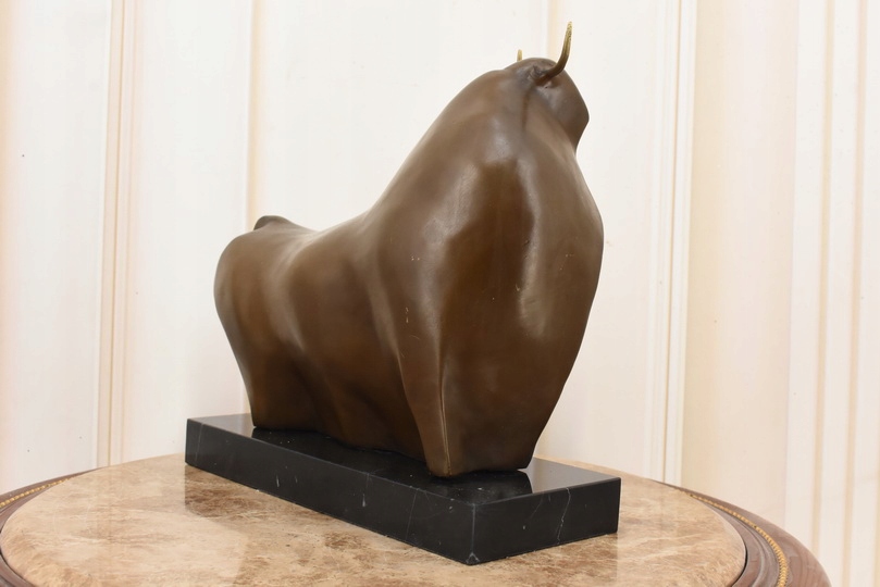 Na sprzedaż wyjątkowa rzeźba inspirowana twórczością Fernando Botero, przedstawiająca charakterystyczny dla artysty gruby, abstrakcyjny byk. Figura emanuje siłą, dynamiką i ekspresją, typową dla stylu Botero, gdzie formy są przerysowane, a kształty pełne objętości.