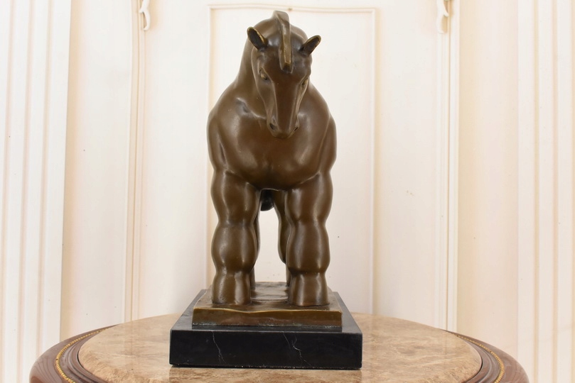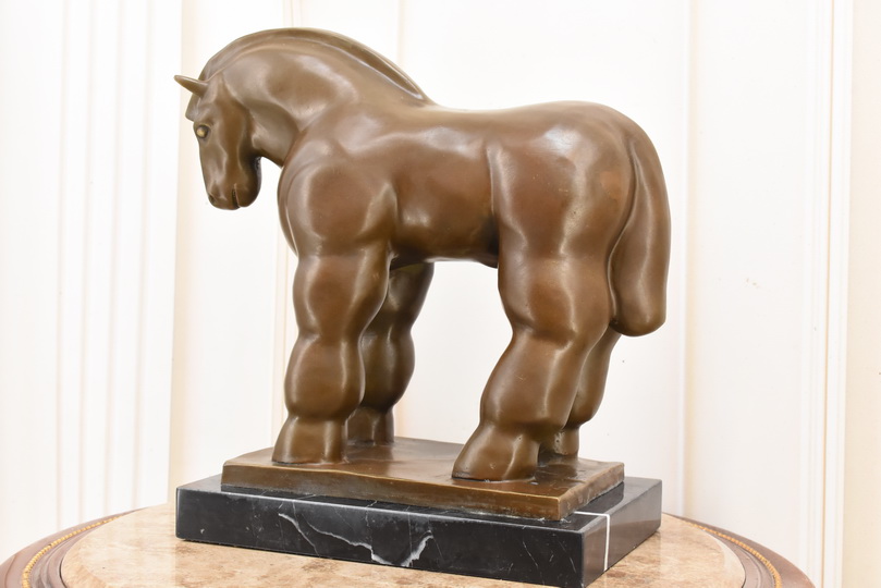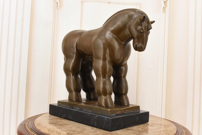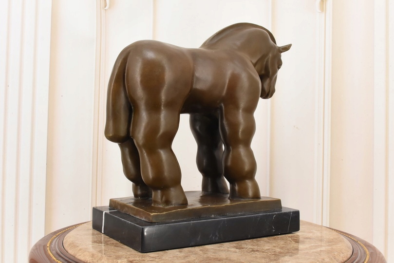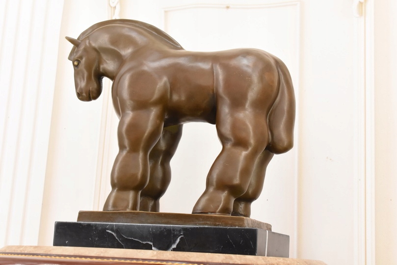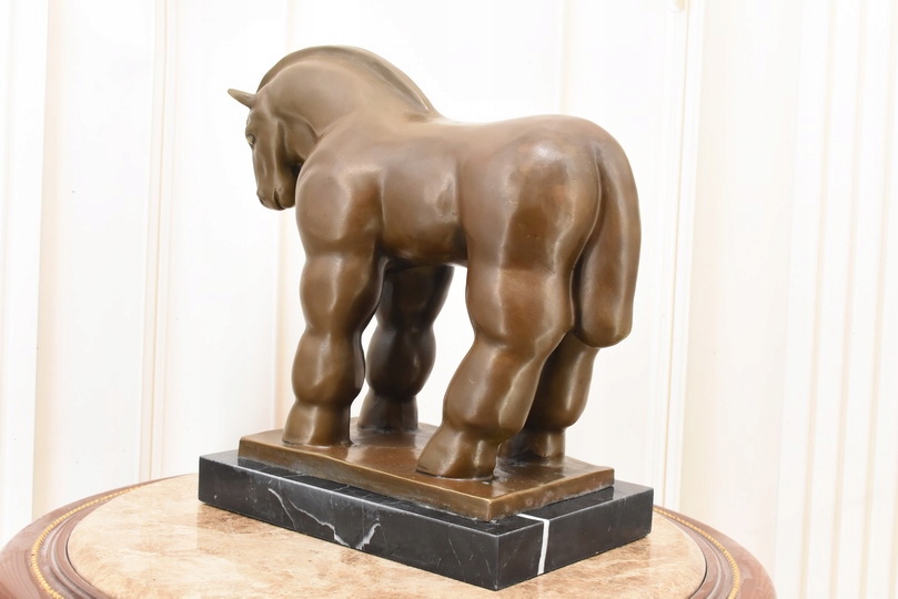 Na sprzedaż wyjątkowa rzeźba w styluFernando Botero, przedstawiająca charakterystyczny dla artysty gruby, koń.