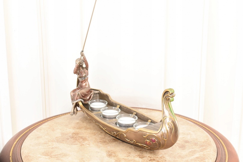 Figura przedstawia swiecznik z kobieta