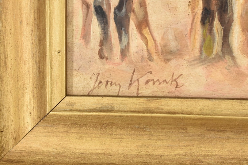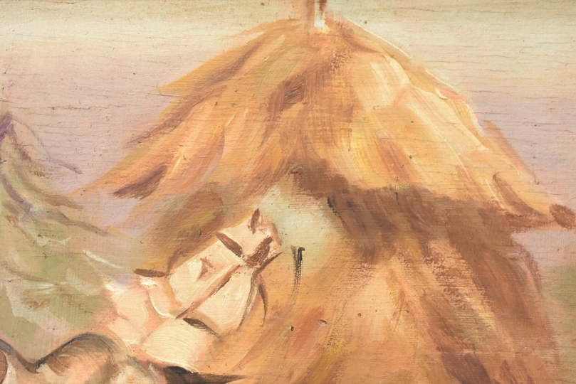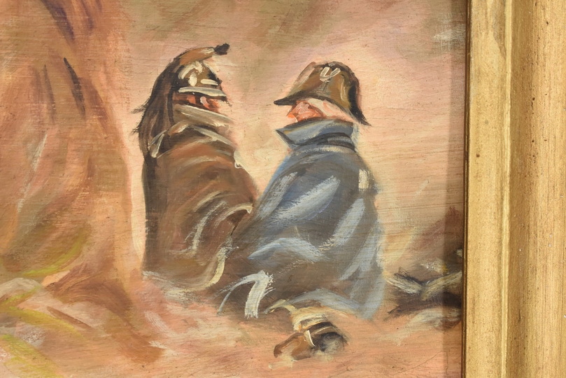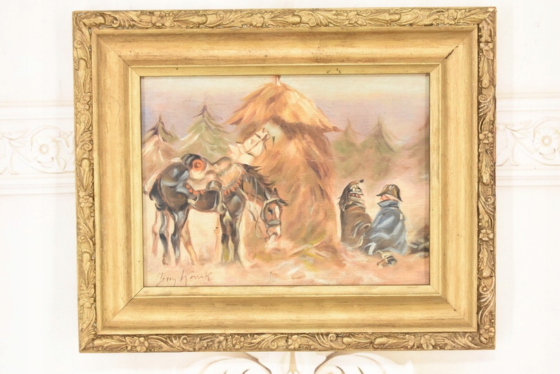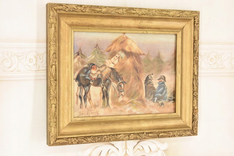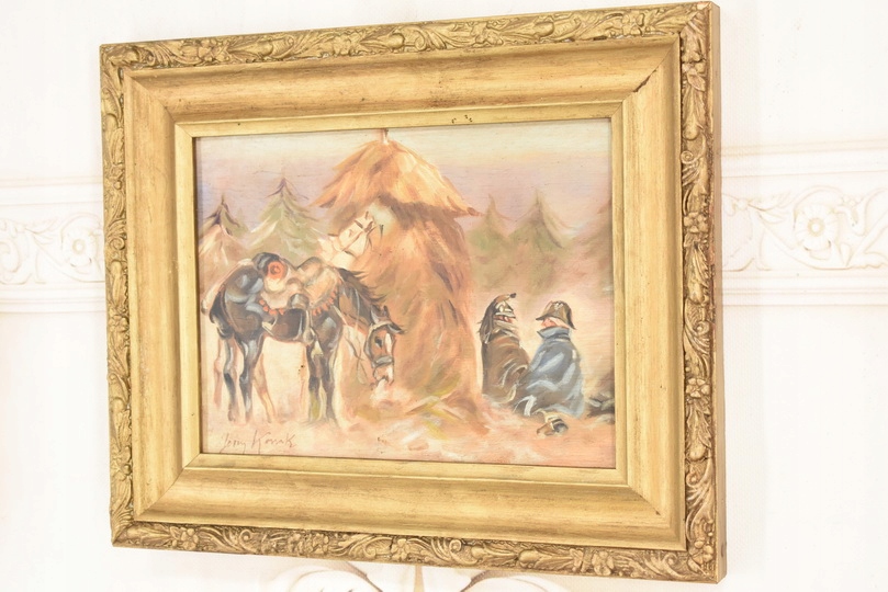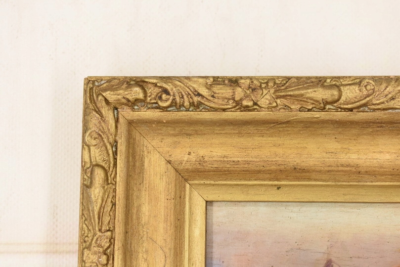 Wyjątkowy stary obraz olejny na desce w eleganckiej złotej ramie
