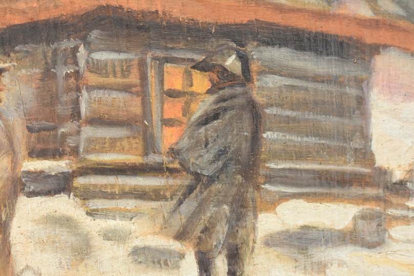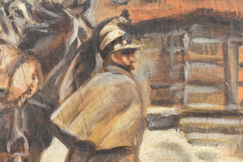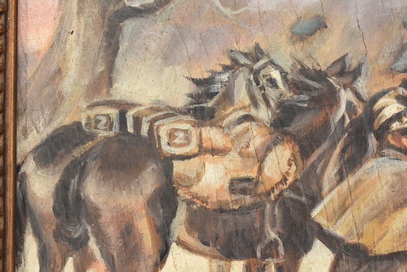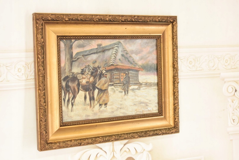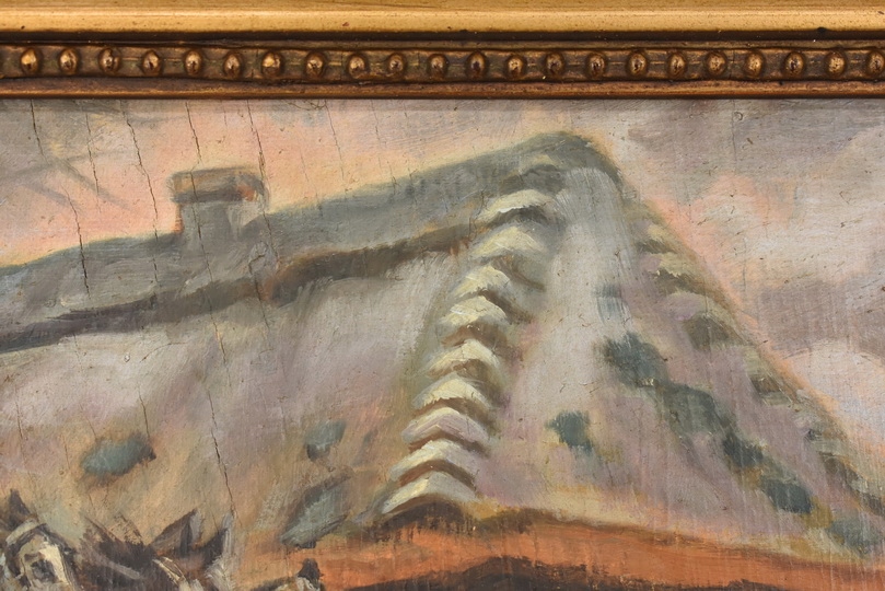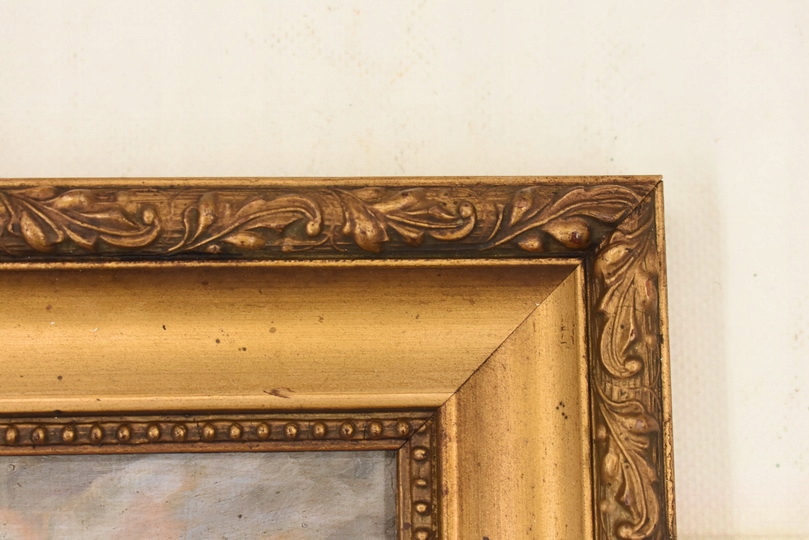 Wyjątkowy stary obraz olejny na desce w eleganckiej złotej ramie