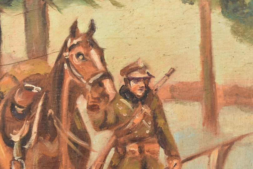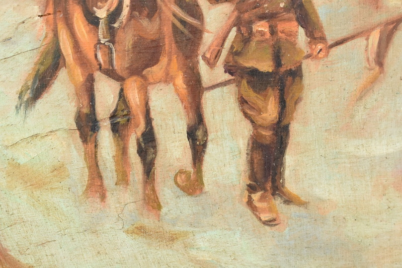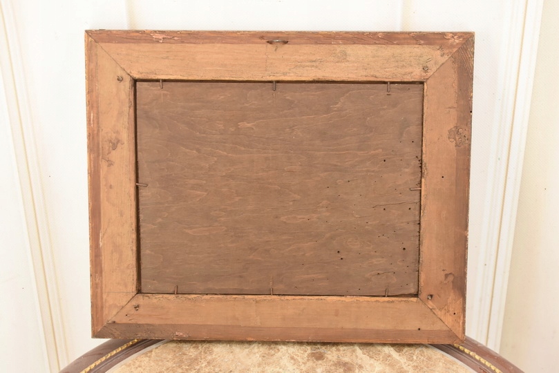 Wyjątkowy stary obraz olejny na desce w eleganckiej złotej ramie