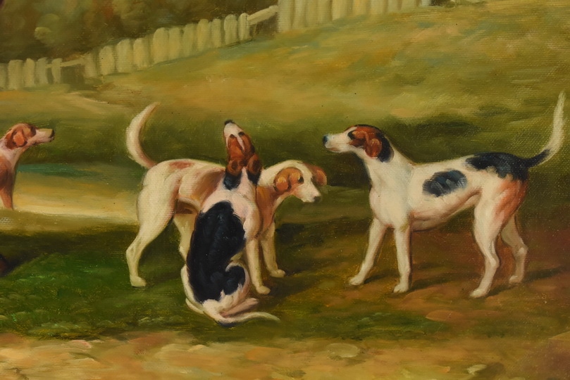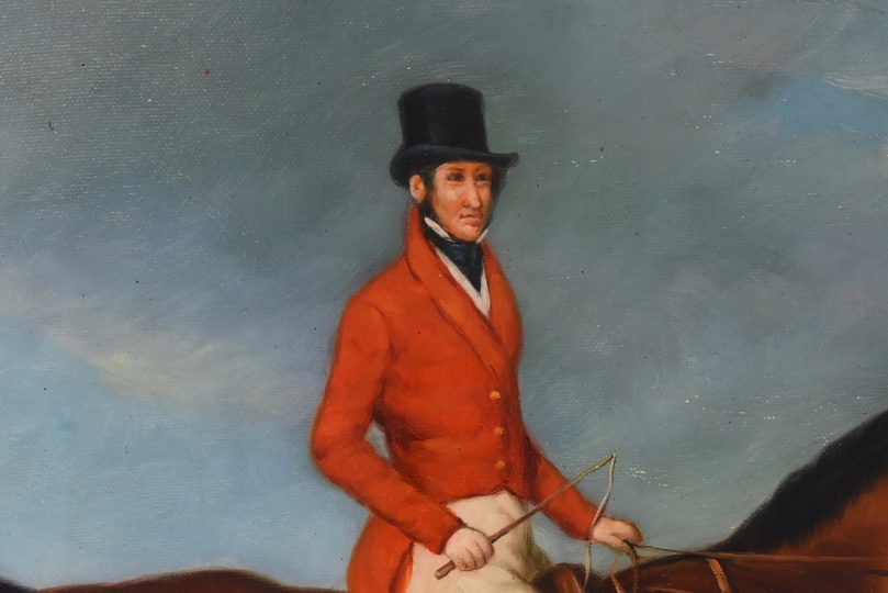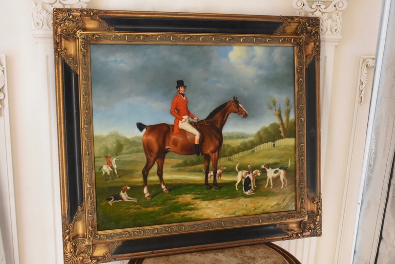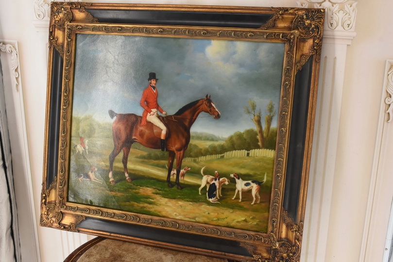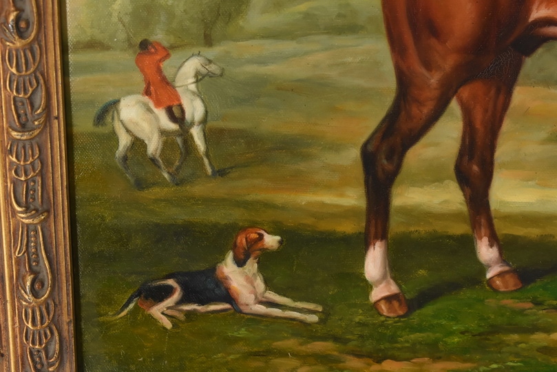 Jeździec Na Koniu z Psami Myśliwskimi - Dżokej - Obraz Olejny Na Płótnie