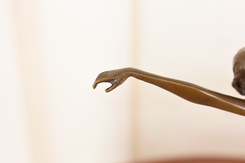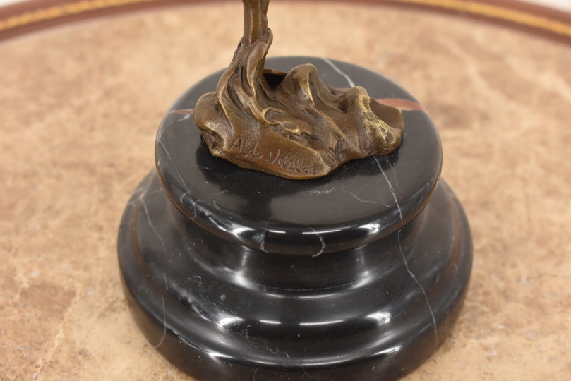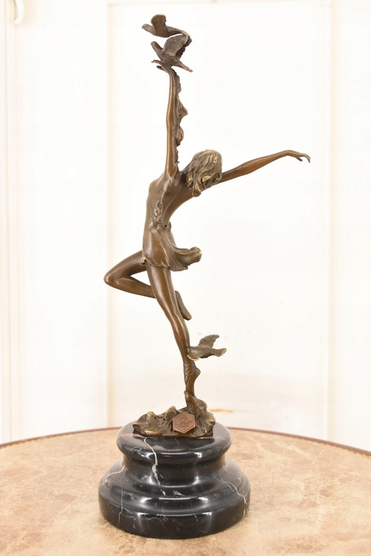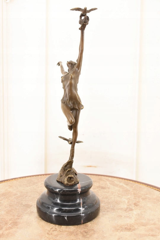Witam, w dniu dzisiejszym pragnę zaoferować Państwu przepiękną rzeźbę wykonaną z brązu uformowaną na marmurowej podstawie.