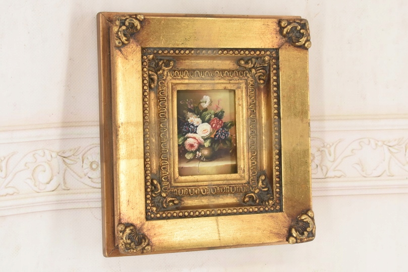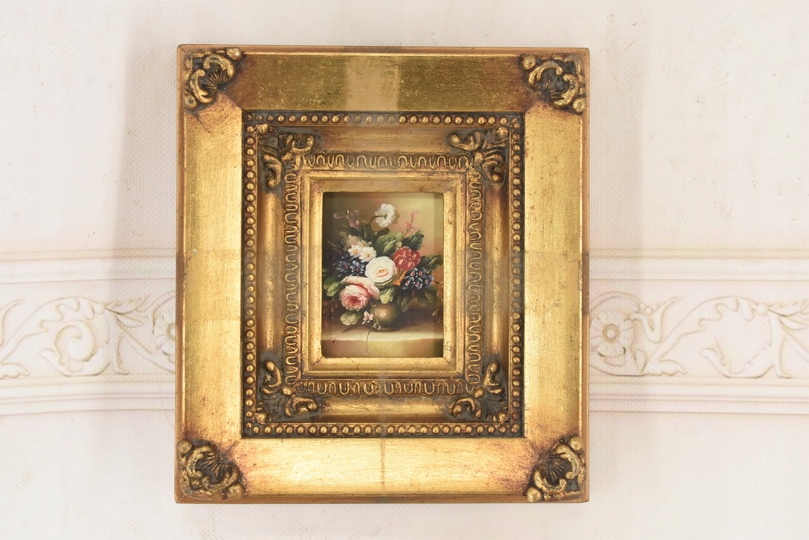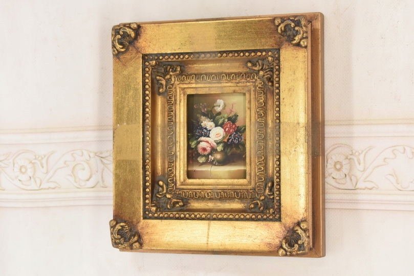 Strona główna » Kolekcje i sztuka » Sztuka » Reprodukcje i przedmioty stylizowane » Malarstwo » Kolorowe Kwiaty w Wazonie - Martwa Natura Obraz Olejny Złota Zdobiona Rama