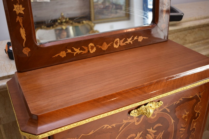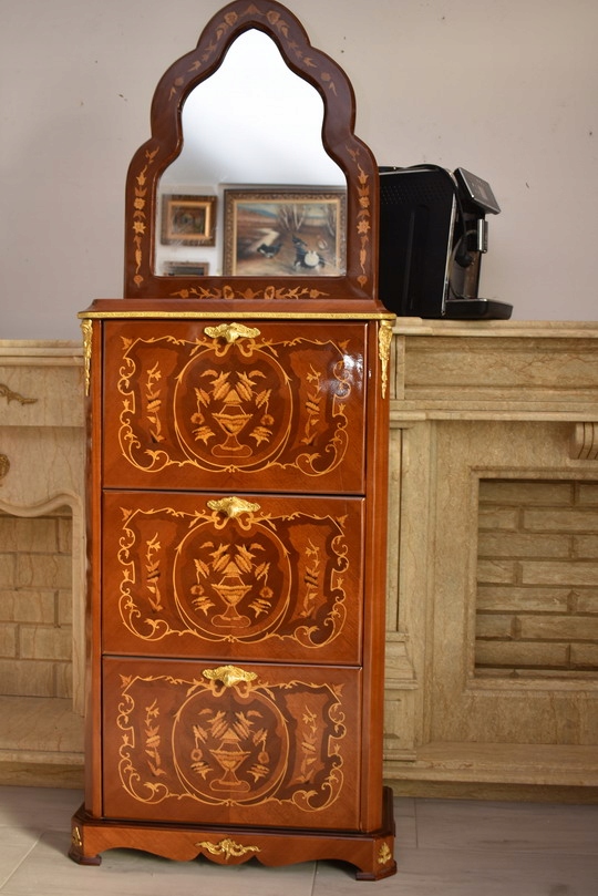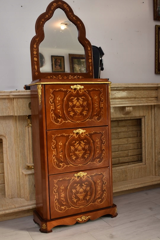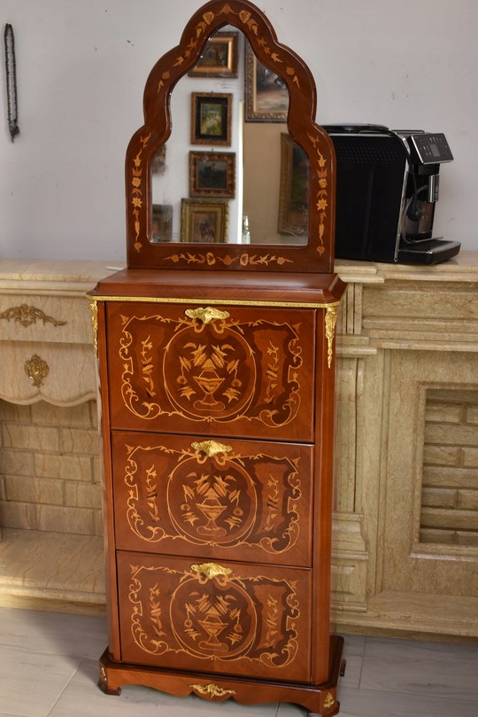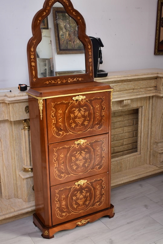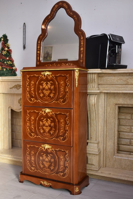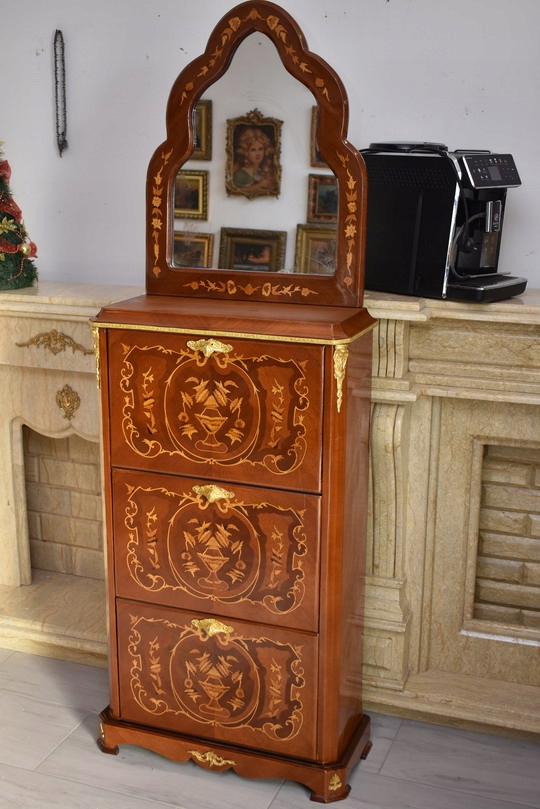 Na sprzedaż elegancka komoda / buciarka z lustrem, pełniąca funkcję konsoli do przedpokoju. Mebel łączy w sobie praktyczność oraz dekoracyjny charakter, idealnie sprawdzi się w holu, korytarzu lub wiatrołapie.