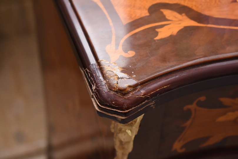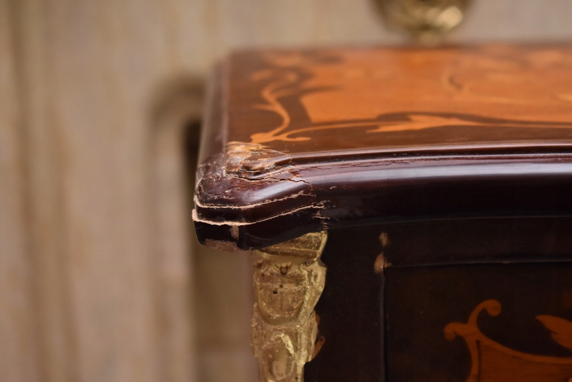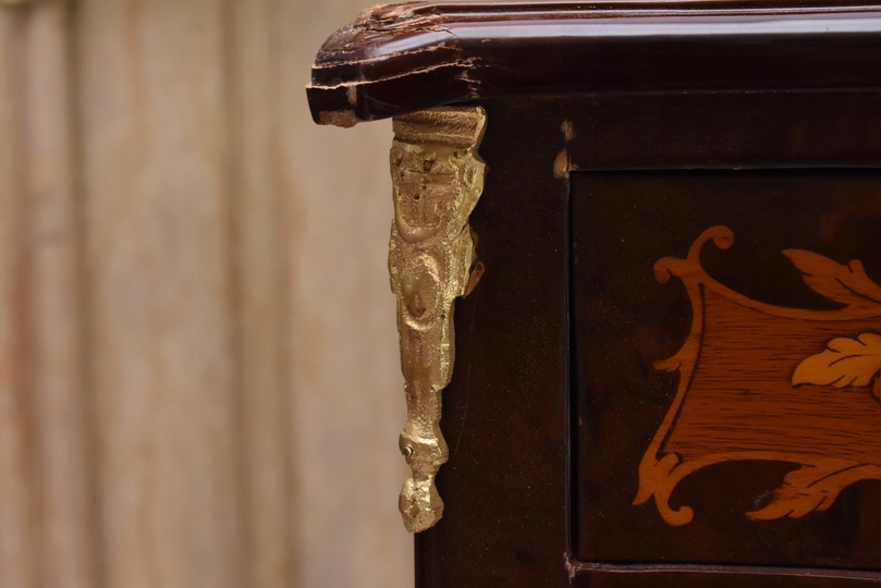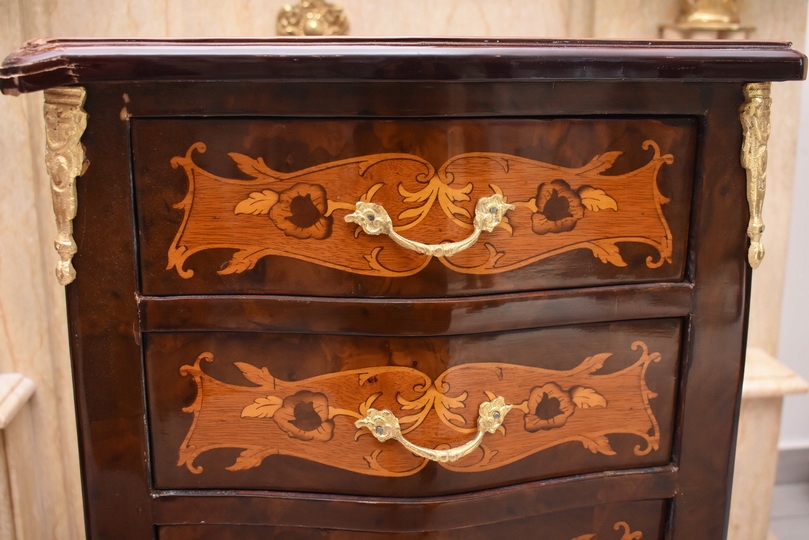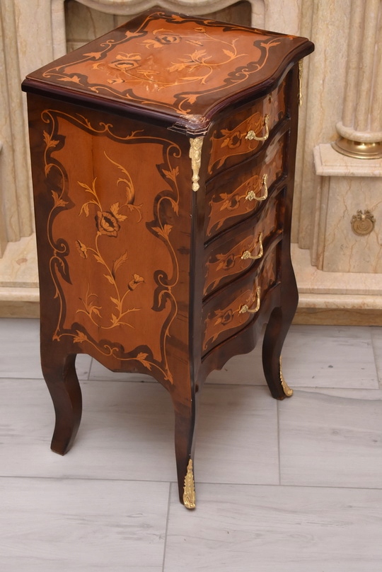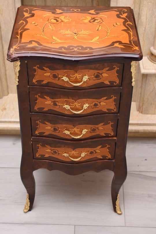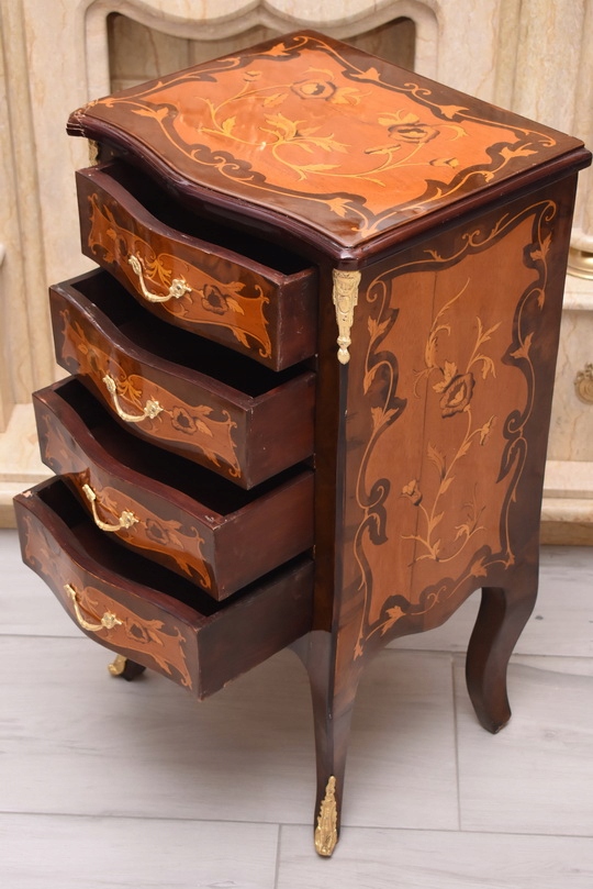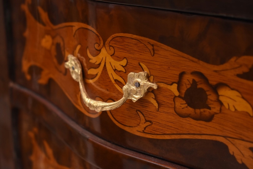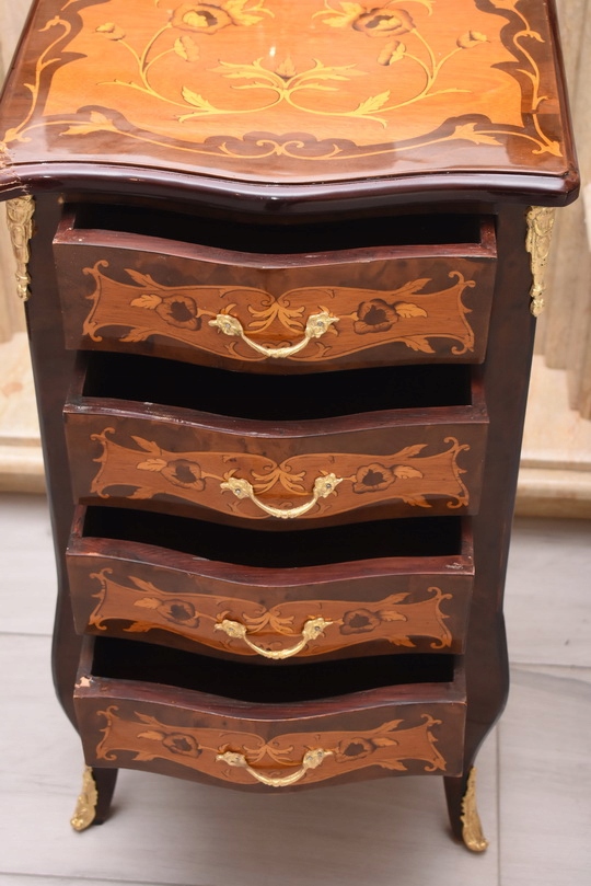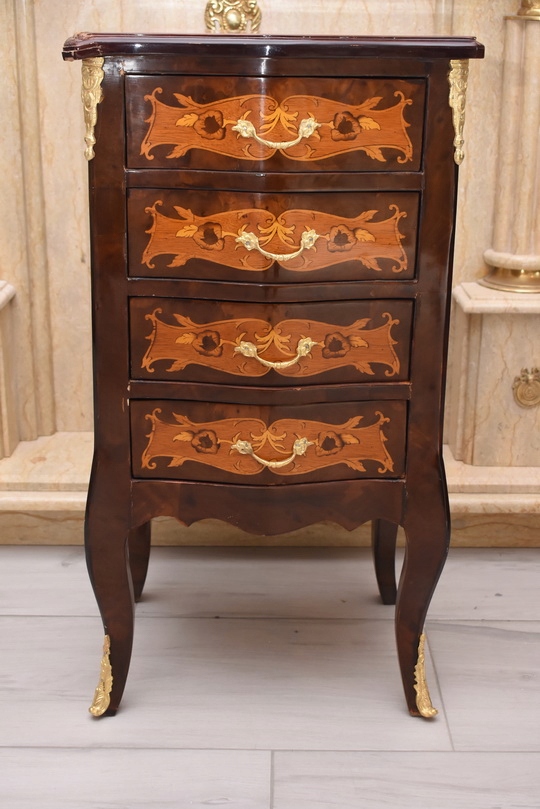 Przedmiotem jest niesamowicie piękna drewniana francuska komoda z szufladami.