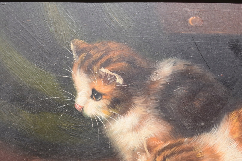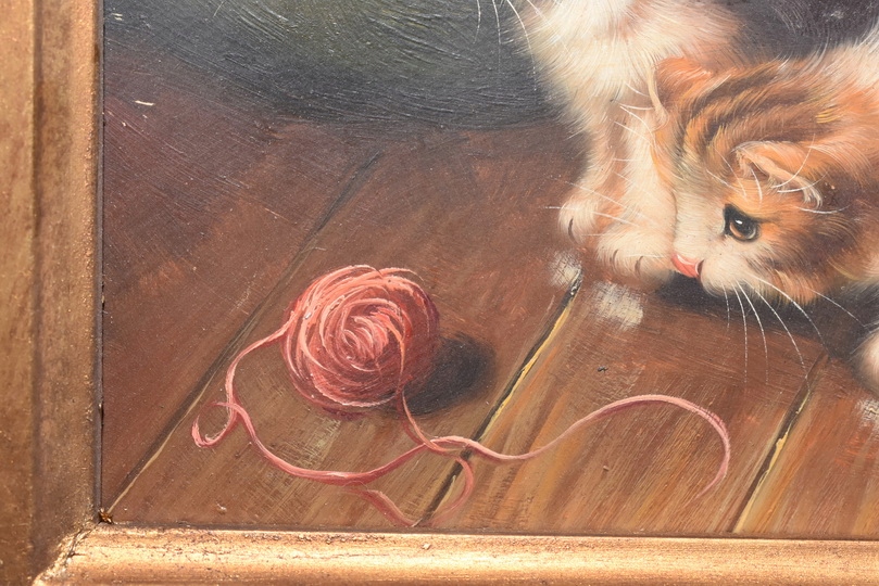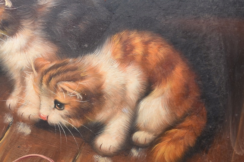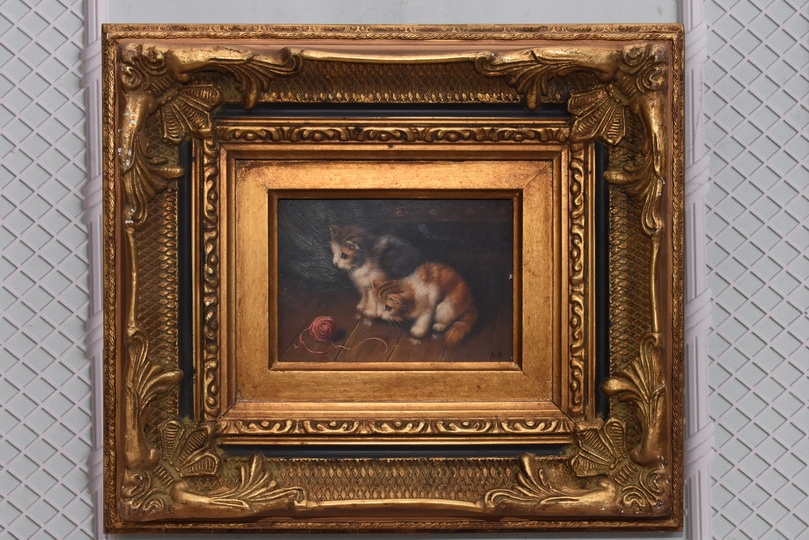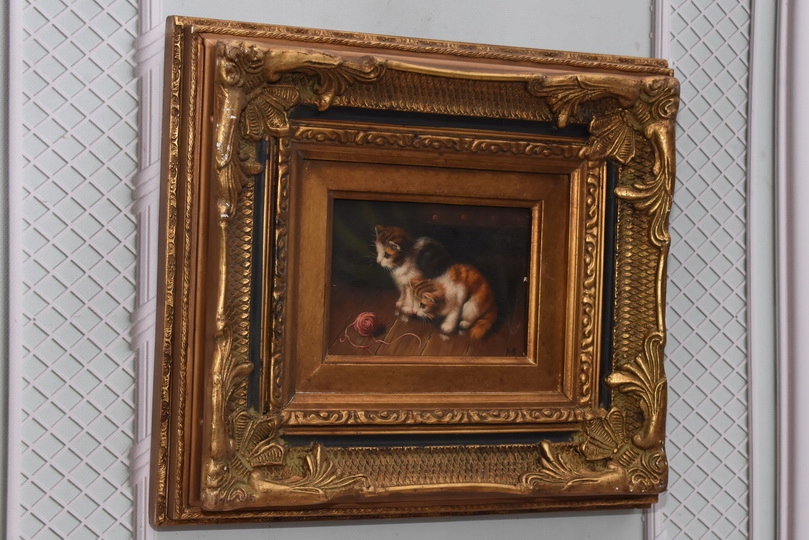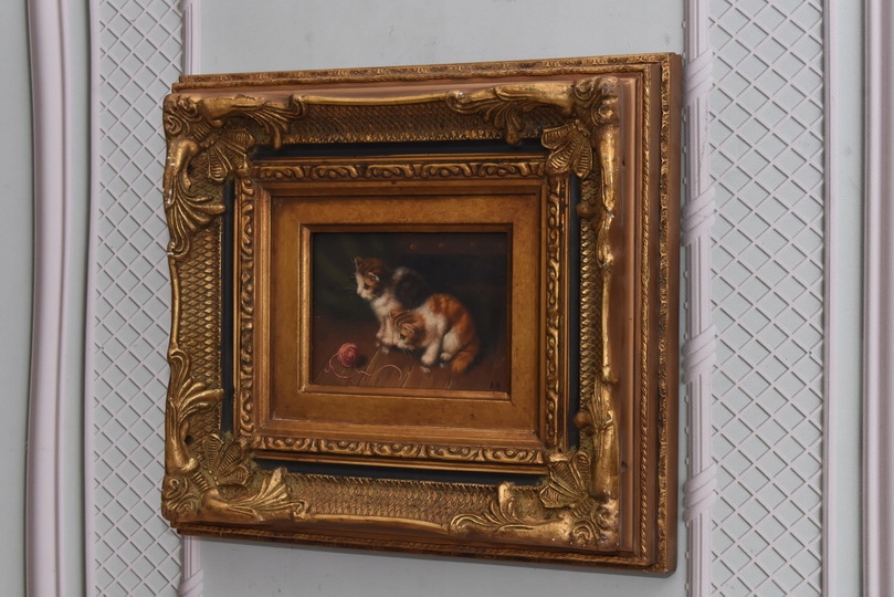 Strona główna » Kolekcje i sztuka » Sztuka » Malarstwo » Pejzaż » Kotki Przy Sznurku - Dwa Małe Koty Kocury - Obraz Olejny Złoto Czarna Rama