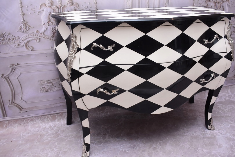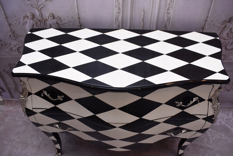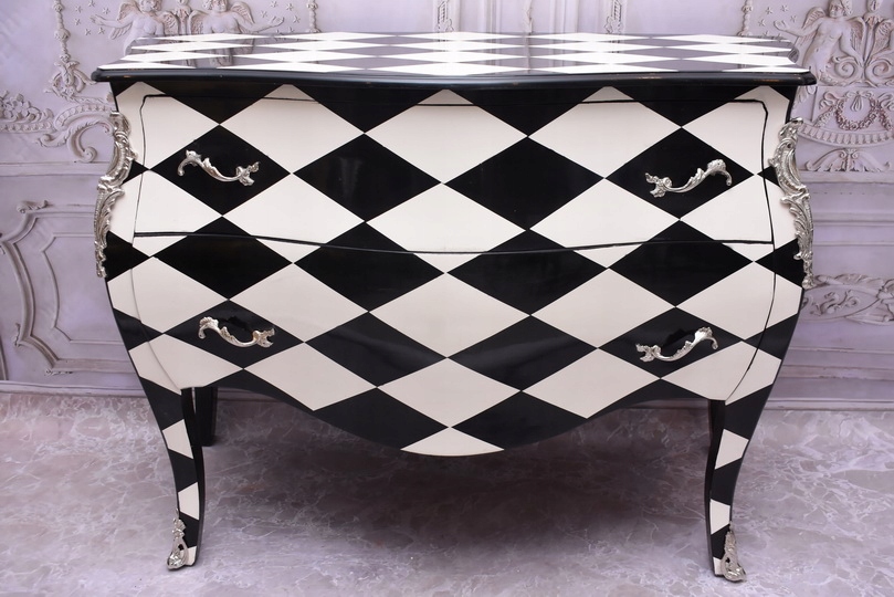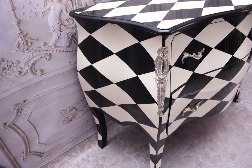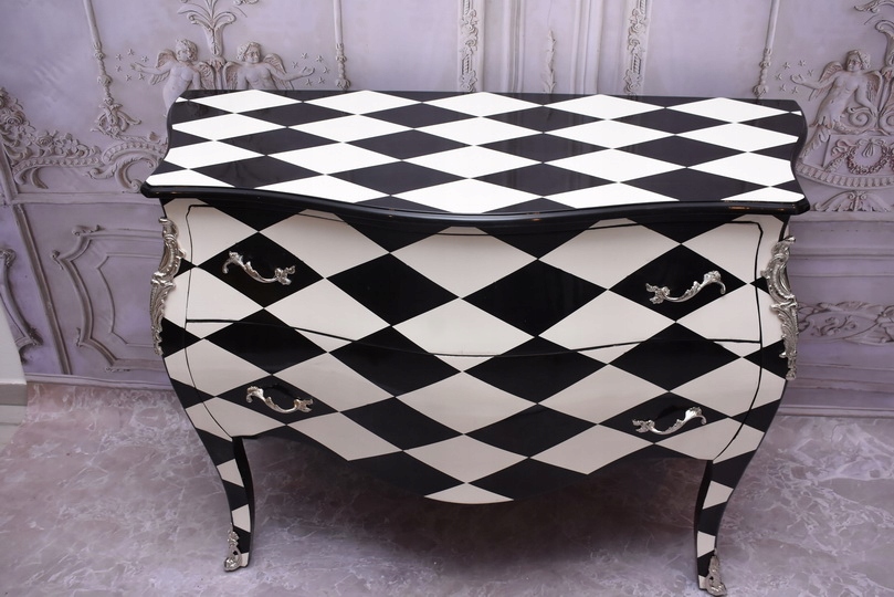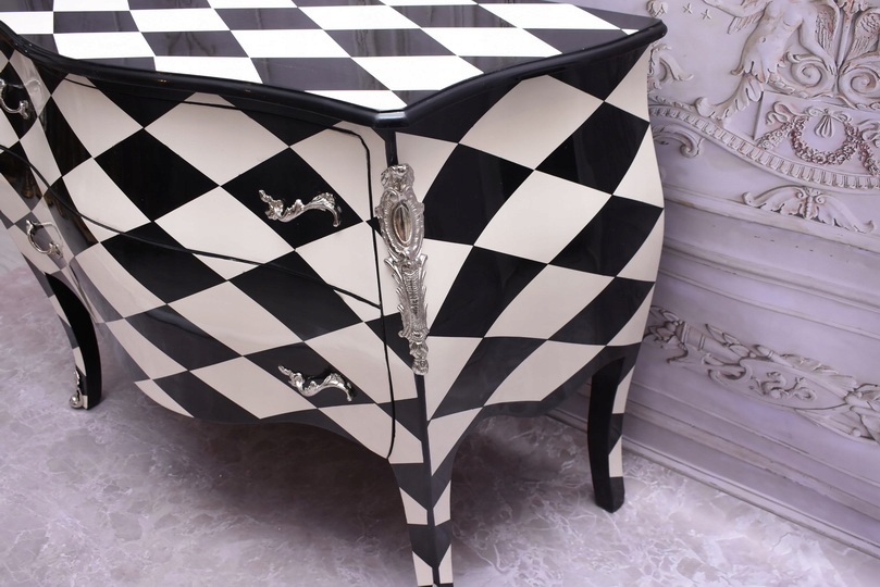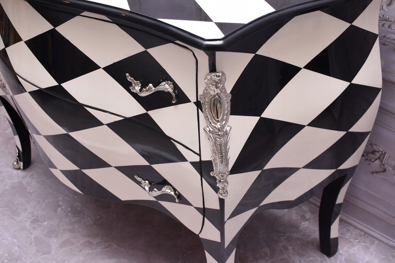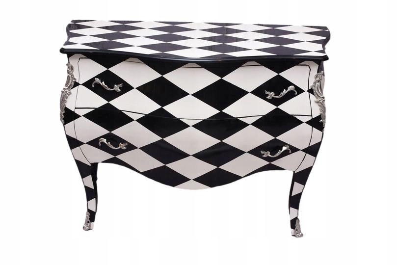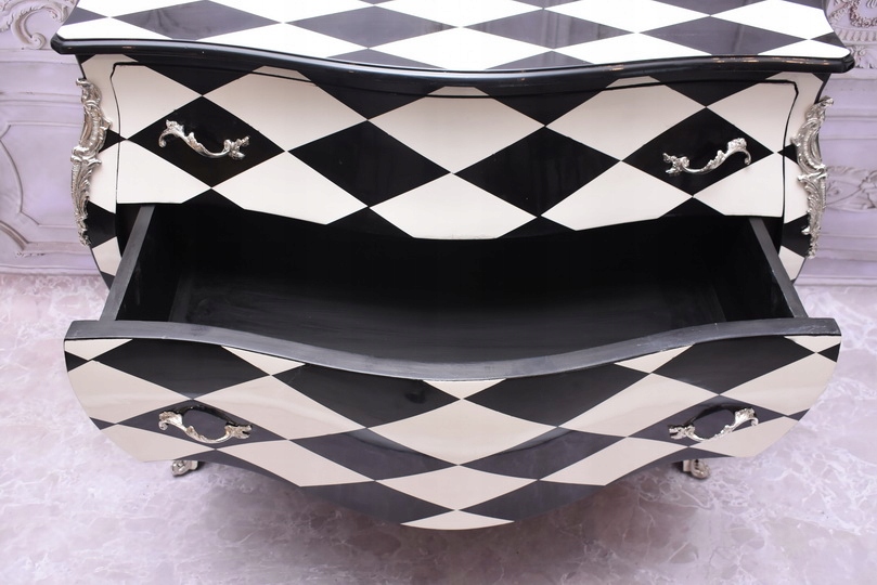 Królewska Biało Czarna Komoda to niezwykłe połączenie elegancji i stylu. Ta piękna szafa glamour jest doskonałym dodatkiem do każdego wnętrza, które wymaga odrobiny luksusu.
