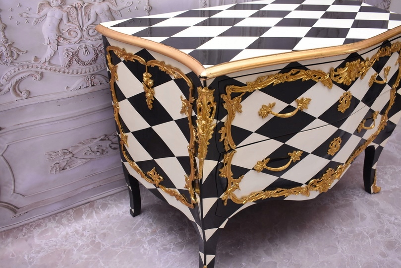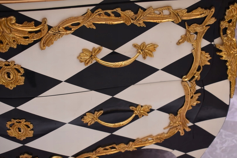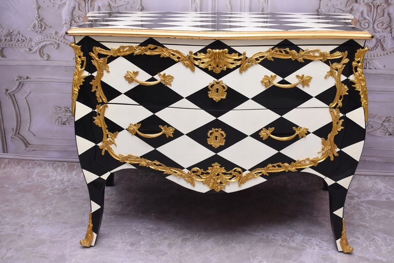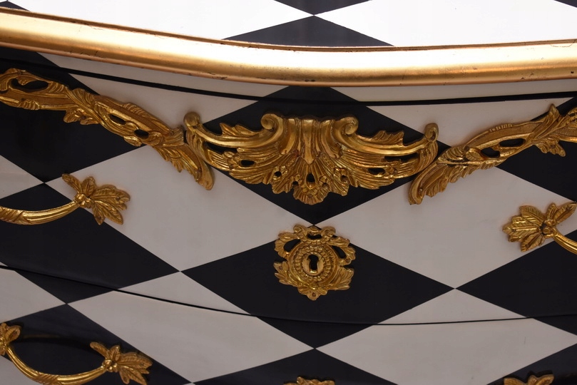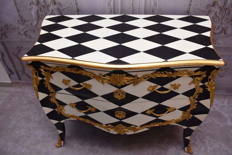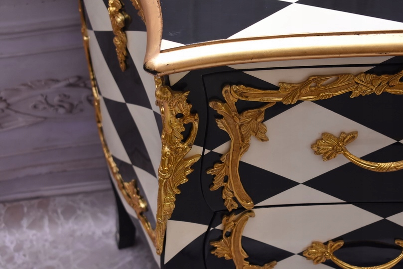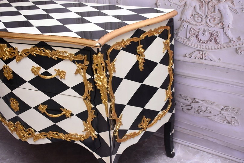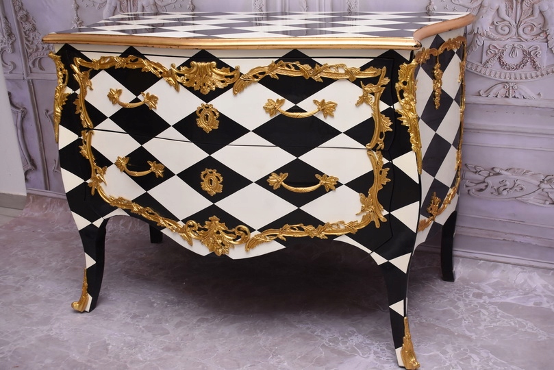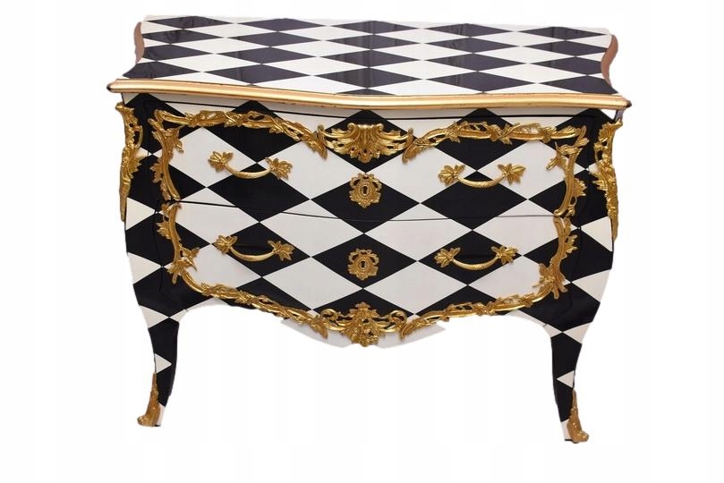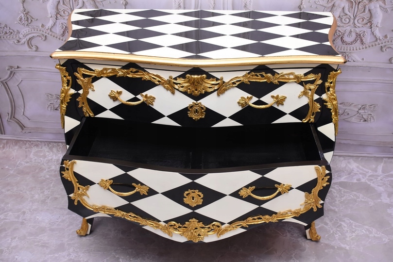 Królewska Biało Czarna Komoda to niezwykłe połączenie elegancji i stylu. Ta piękna szafa glamour jest doskonałym dodatkiem do każdego wnętrza, które wymaga odrobiny luksusu.