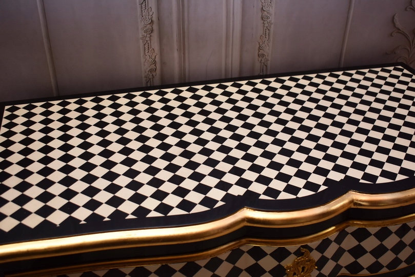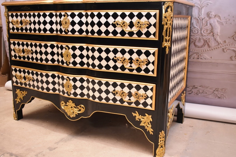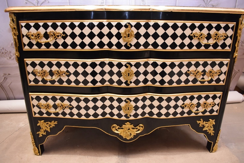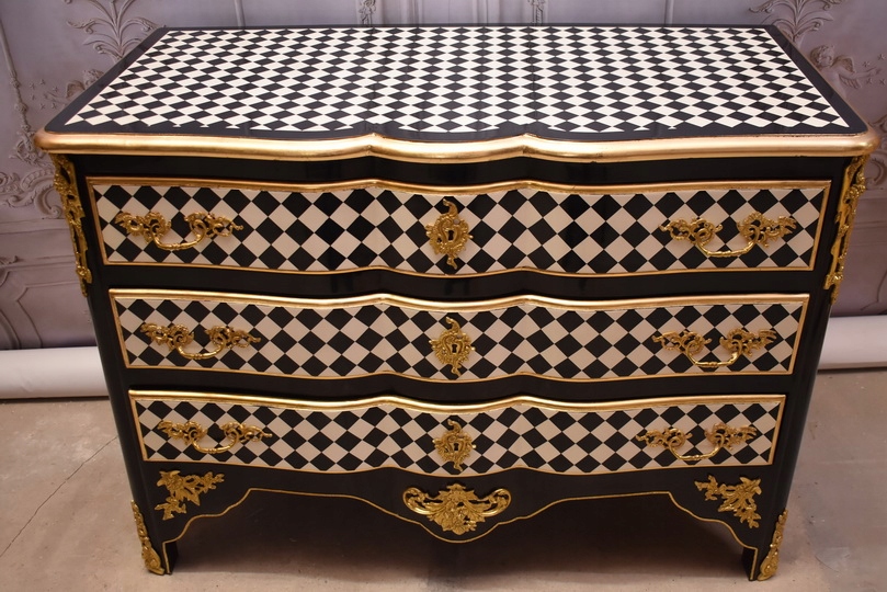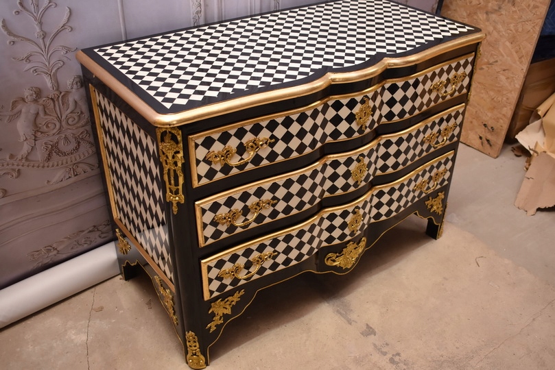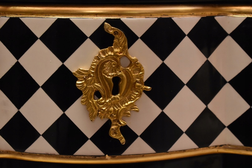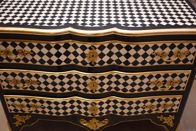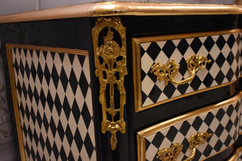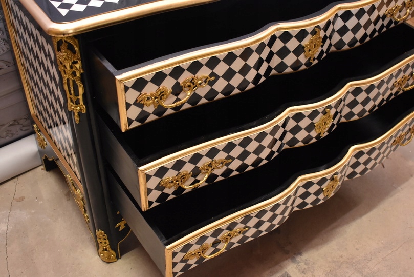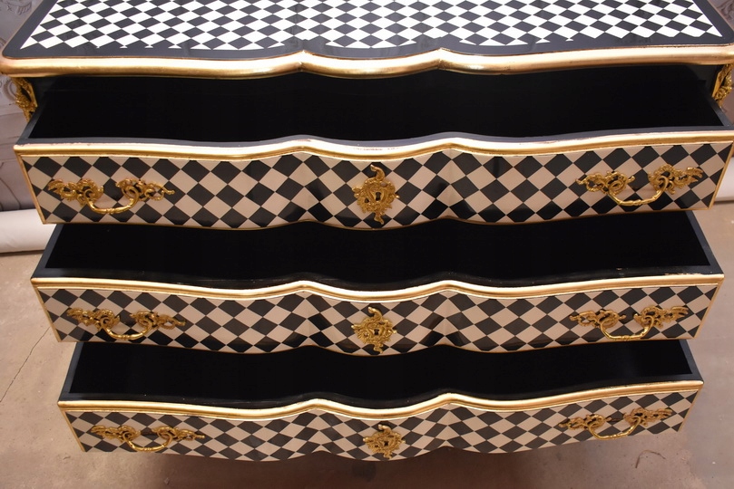 Królewska Biało Czarna Komoda to niezwykłe połączenie elegancji i stylu. Ta piękna szafa glamour jest doskonałym dodatkiem do każdego wnętrza, które wymaga odrobiny luksusu.