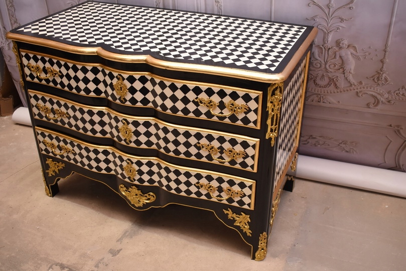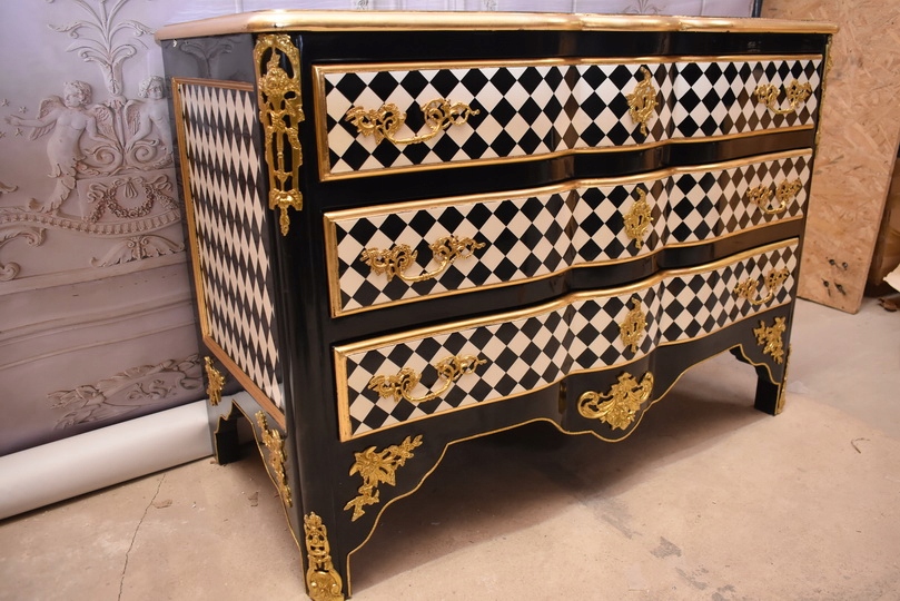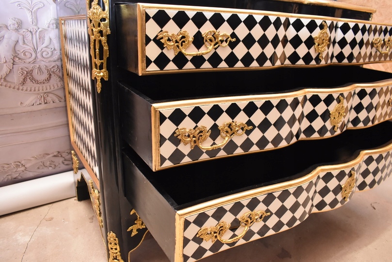 Komoda ta doskonale sprawdzi się zarówno w tradycyjnych, jak i nowoczesnych aranżacjach wnętrz, dodając im unikalnego charakteru i wyrafinowanego smaku. To nie tylko mebel, ale również dzieło sztuki, które przyciąga uwagę i zachwyca swoim pięknem.