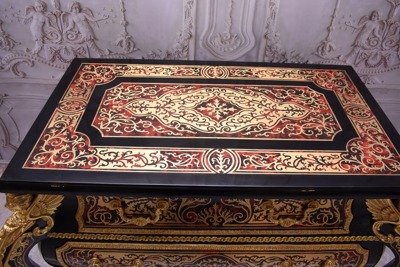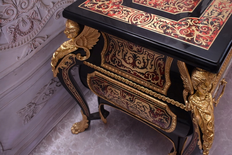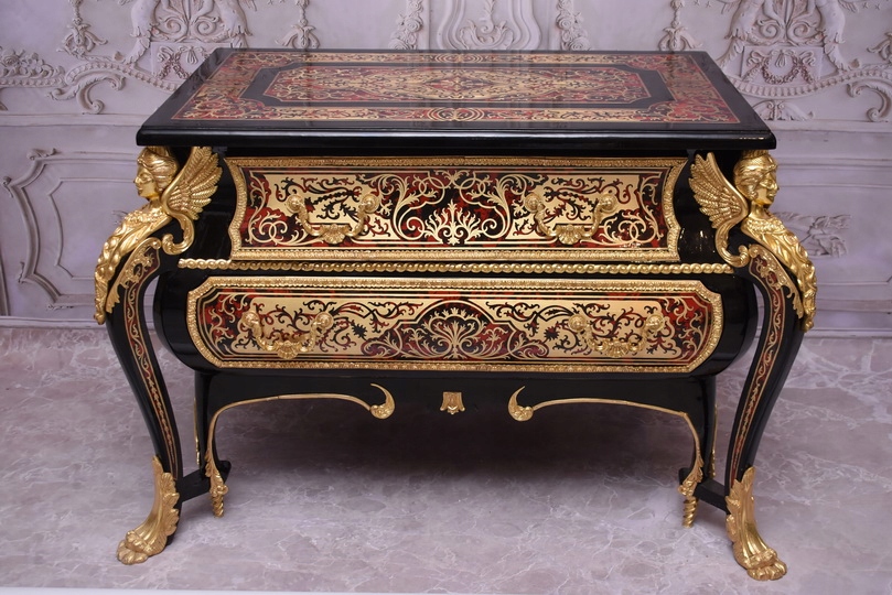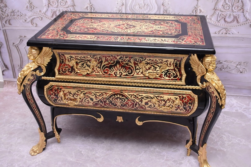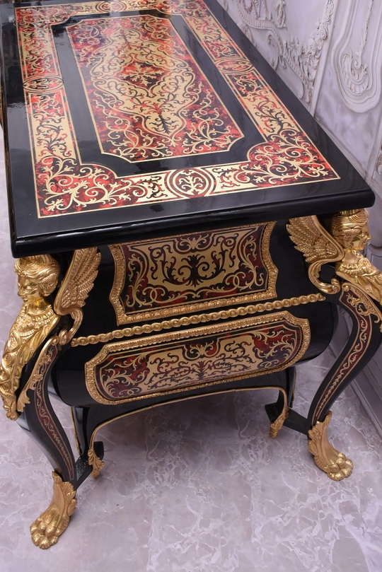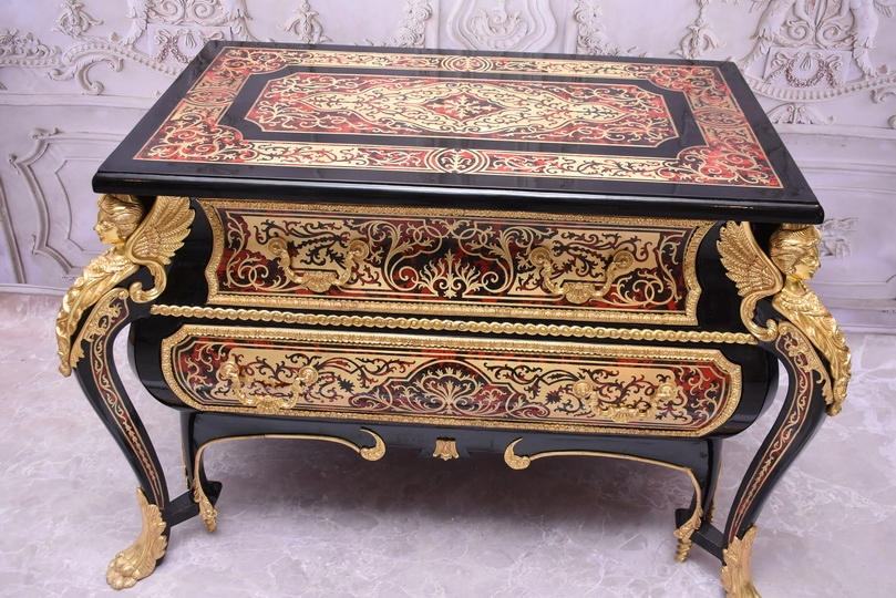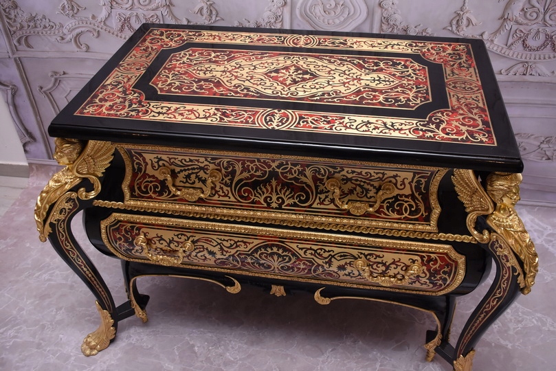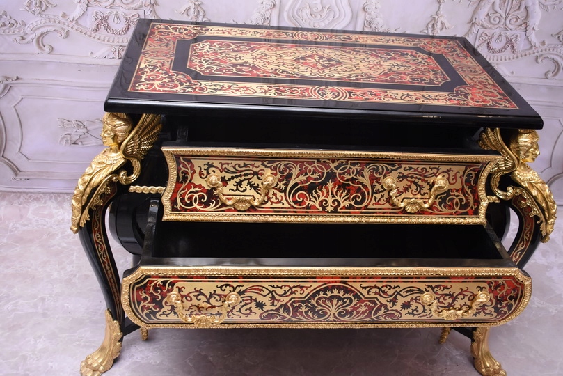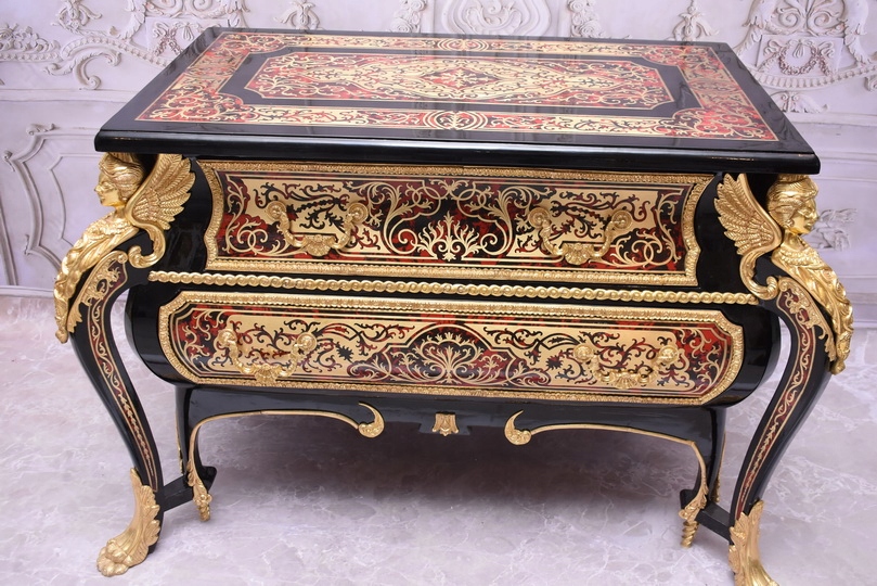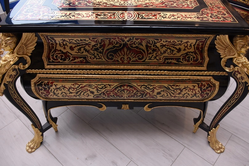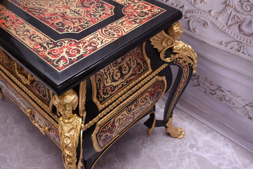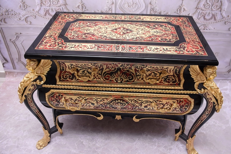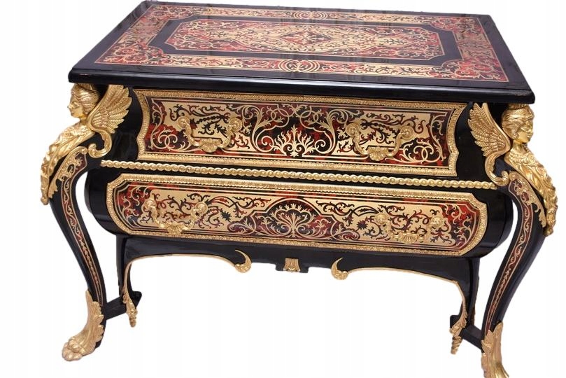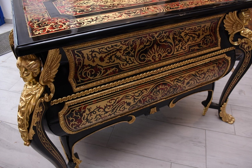 Niesamowicie piękną komodę BOULLE, licznie zdobiona okuciami Z BRĄZU, które dodają wspaniałego uroku meblowi. Lite drewno bukowe bardzo ciężka.