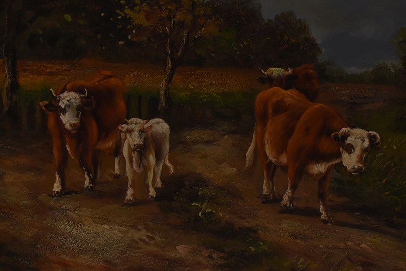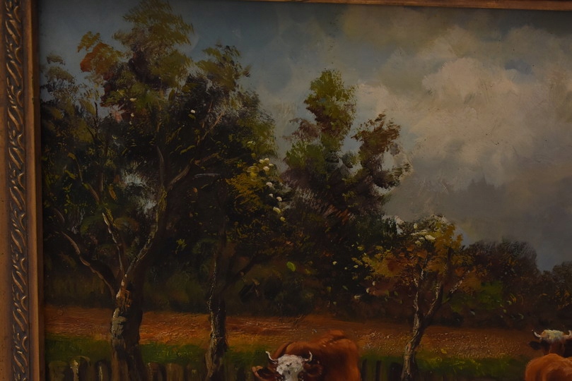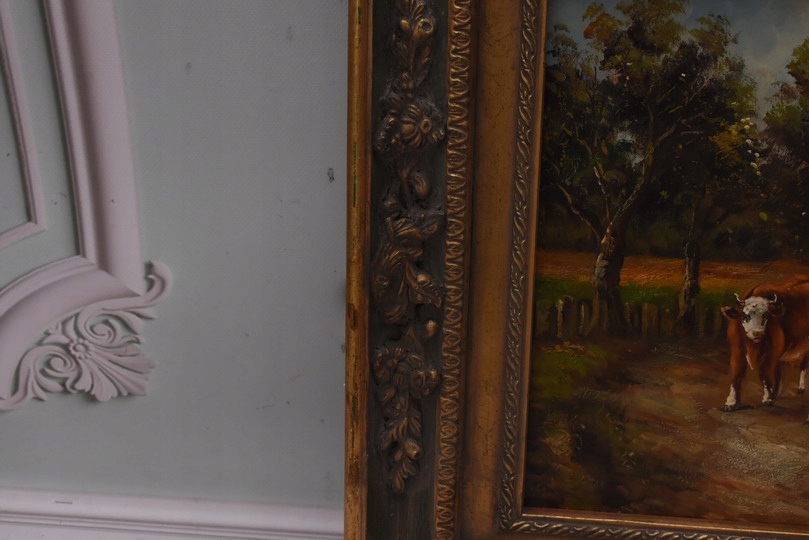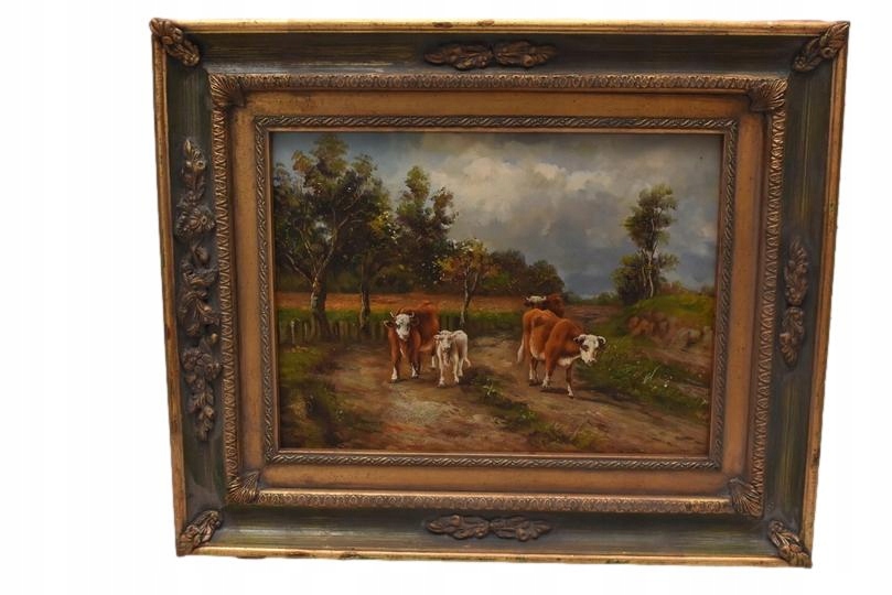 Strona główna » Kolekcje i sztuka » Sztuka » Reprodukcje i przedmioty stylizowane » Malarstwo » Krowy na Pastwisku - Obraz Olejny - Złota Rama