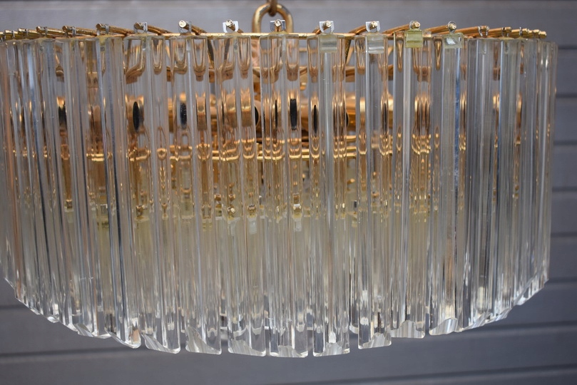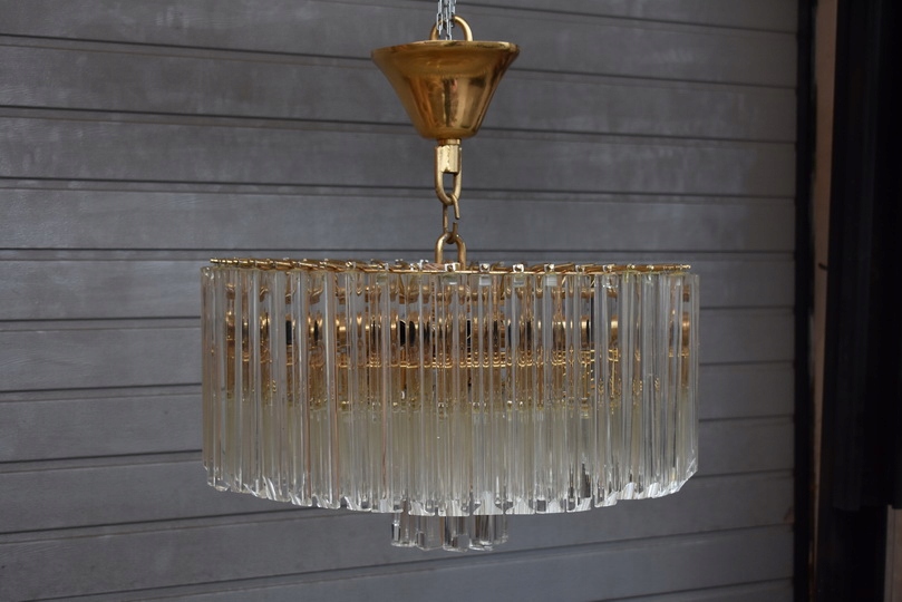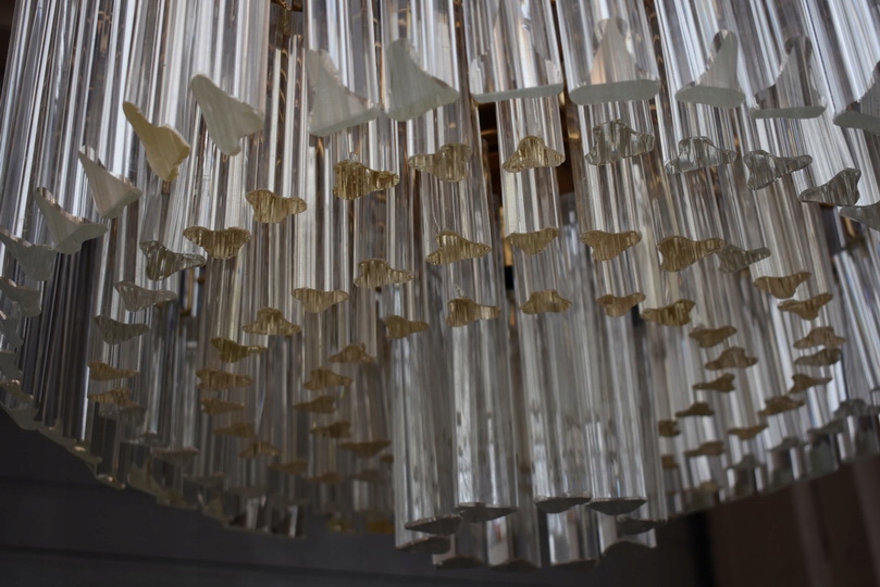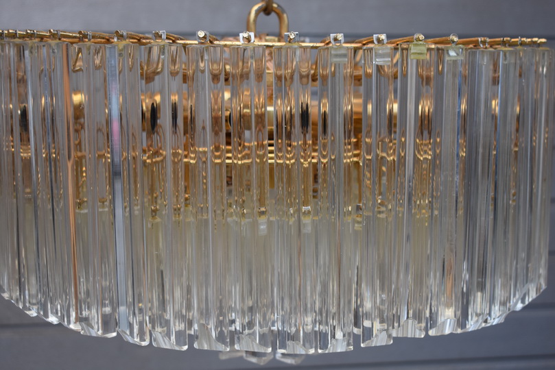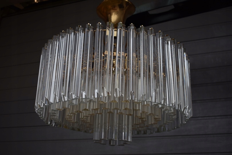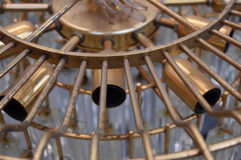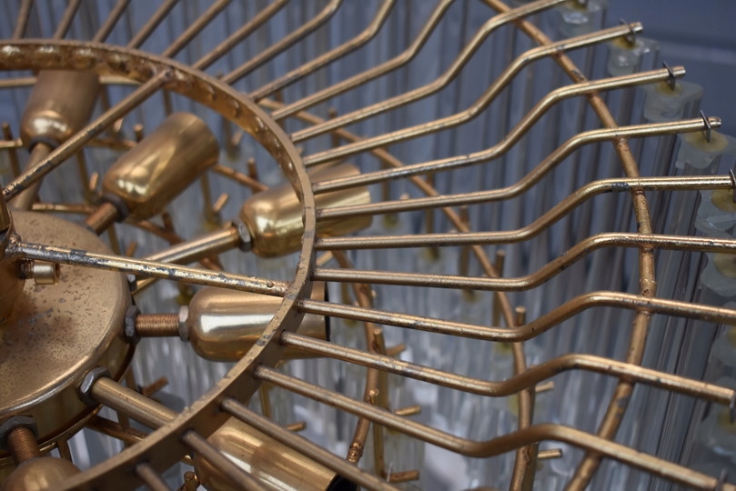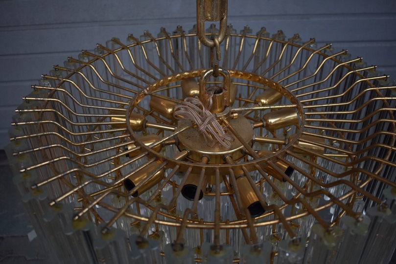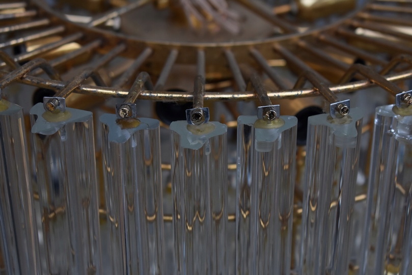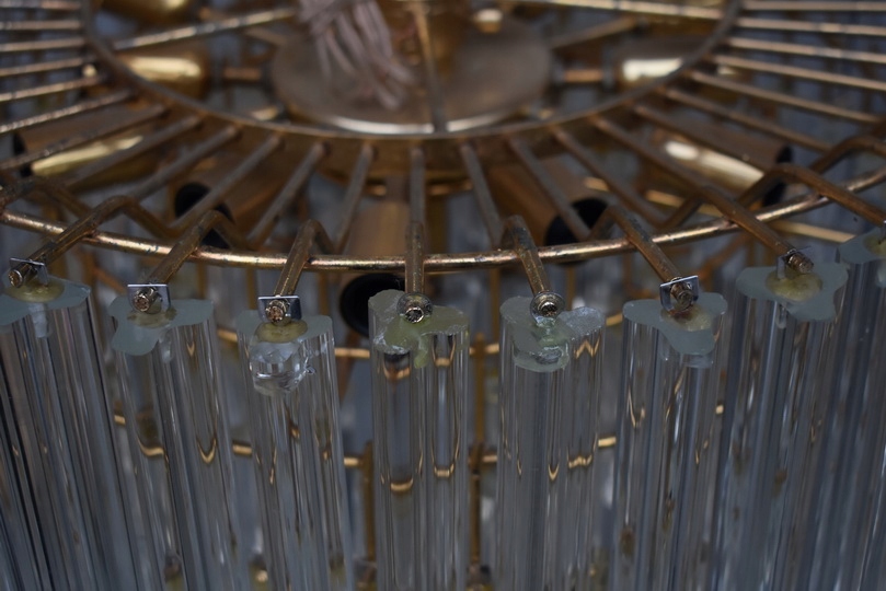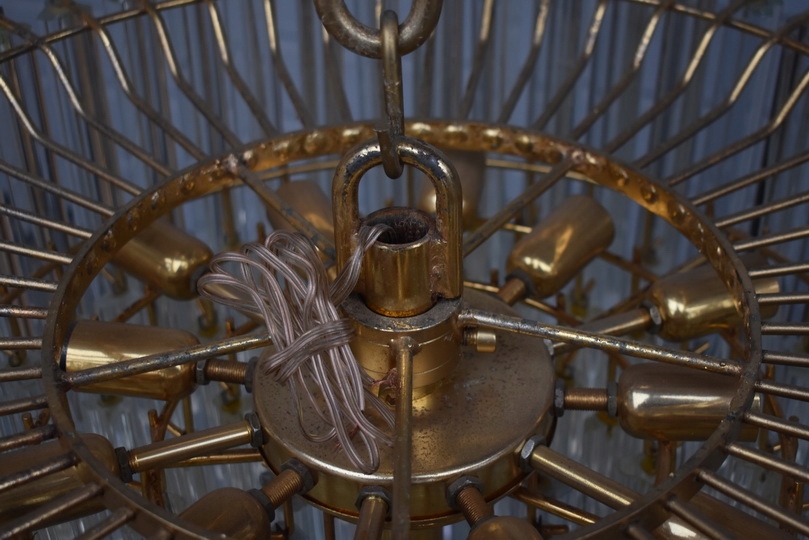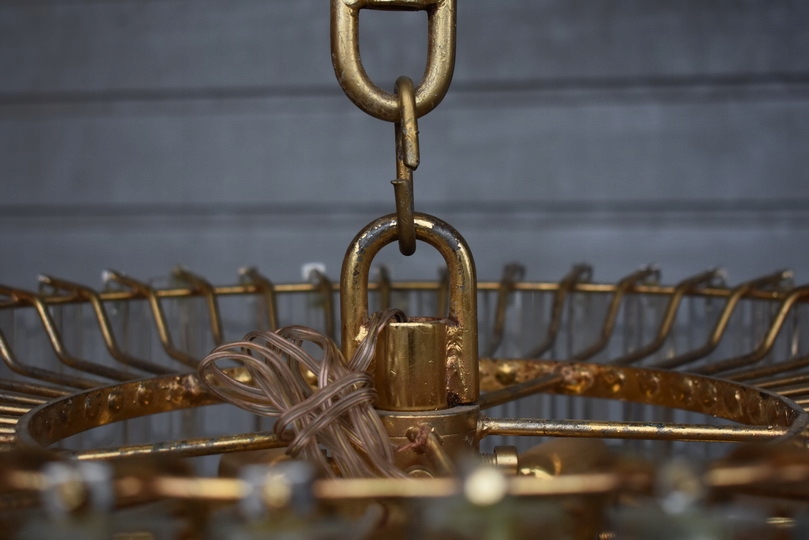 Prezentowany żyrandol kryształowy został wykonany z brązu, co gwarantuje trwałość, solidność oraz szlachetny wygląd. Konstrukcja w formie lampionu została bogato zdobiona starannie szlifowanymi kryształami, które pięknie odbijają światło i tworzą elegancką atmosferę we wnętrzu.