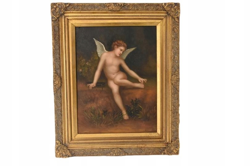 Kupidyn ze Skrzydłami - Amor Anioł - Obraz Olejny - Złota Rama