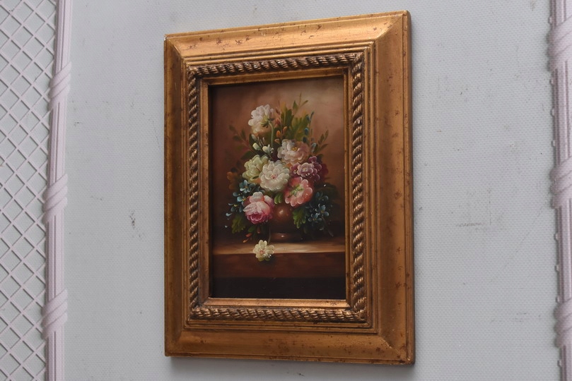 Strona główna » Kolekcje i sztuka » Sztuka » Reprodukcje i przedmioty stylizowane » Malarstwo » Kwiaty w Wazonie - Martwa Natura - Obraz Olejny - Złota Rama