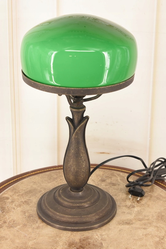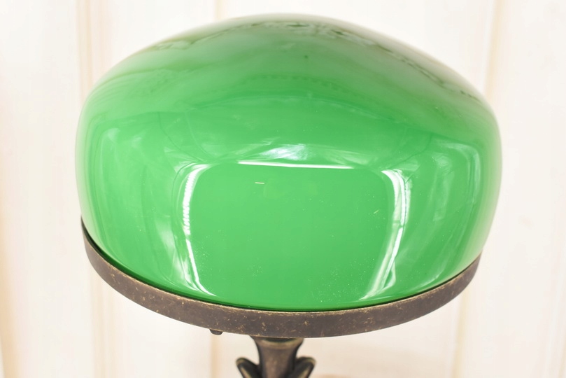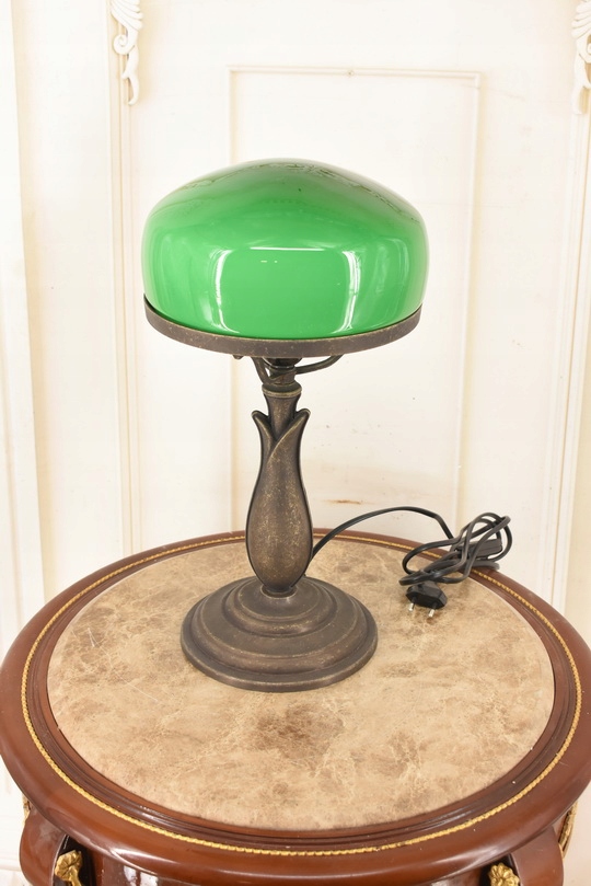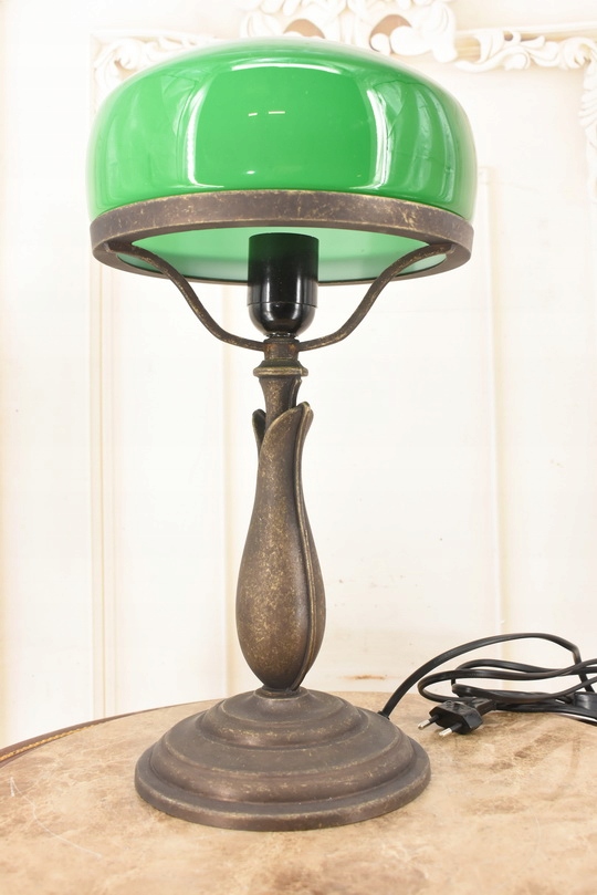 Klasyczna mosiężna lampa gabinetowa z zielonym kloszem zwana notarialną lub bankierką!