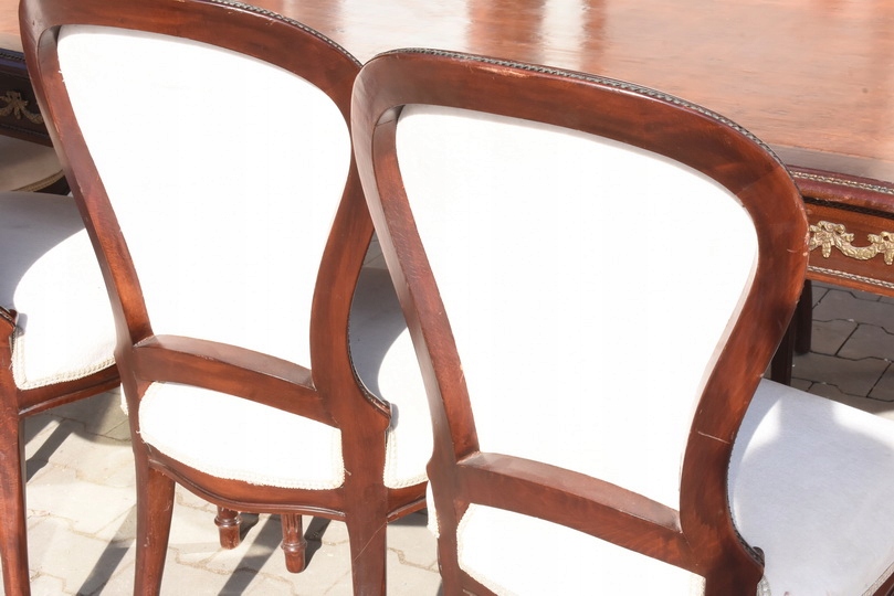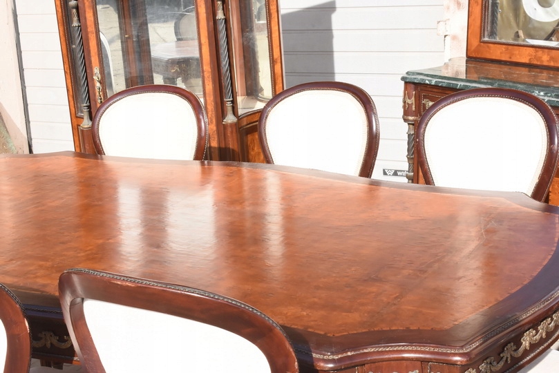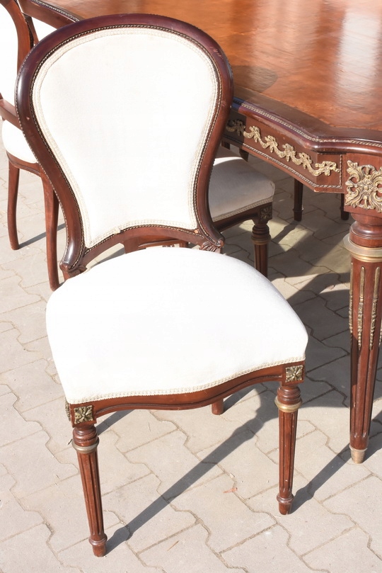 Wyjątkowy, autentyczny antyczny komplet jadalniany w stylu Ludwikowskim, pochodzący z francuskiej rezydencji, datowany na około 120 lat. To meble z historią – stworzone dla wnętrz o wysokim statusie, reprezentacyjnych i pełnych klasy.
