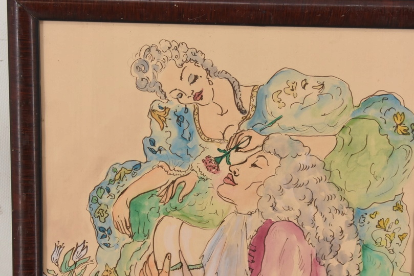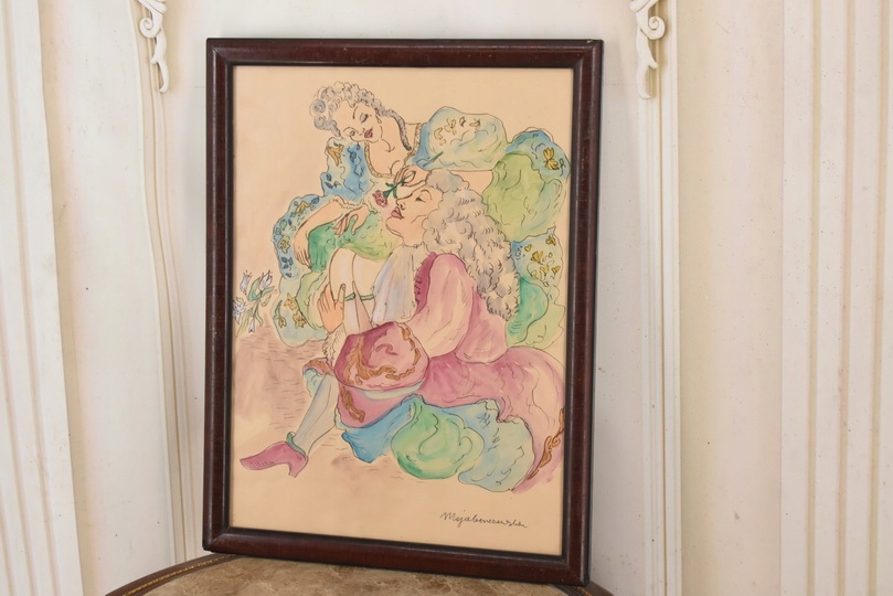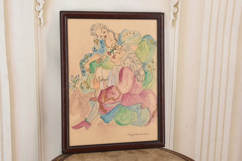 Strona główna » Kolekcje i sztuka » Sztuka » Reprodukcje i przedmioty stylizowane » Malarstwo » Maja Berezowska - Miłosna Scena - Zakochana Para Akwarela Na Papierze Obraz