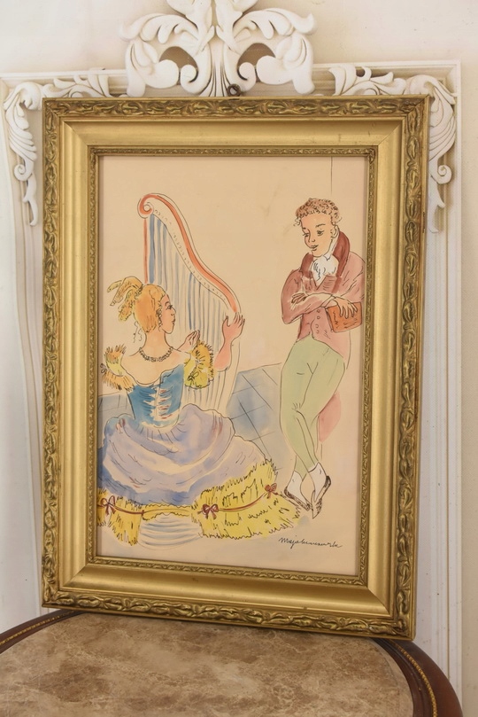 Strona główna » Kolekcje i sztuka » Sztuka » Reprodukcje i przedmioty stylizowane » Malarstwo » Maja Berezowska - Zakochani - Koncert Na Harfie Akwarela Na Papierze Obraz
