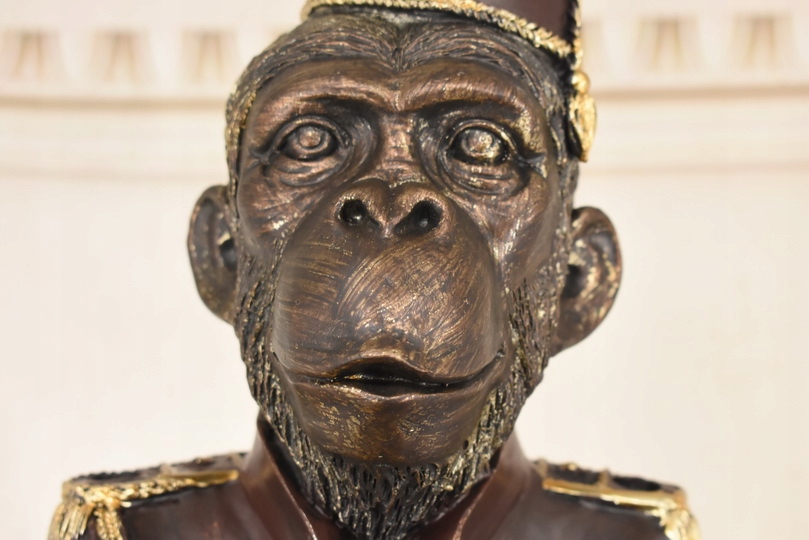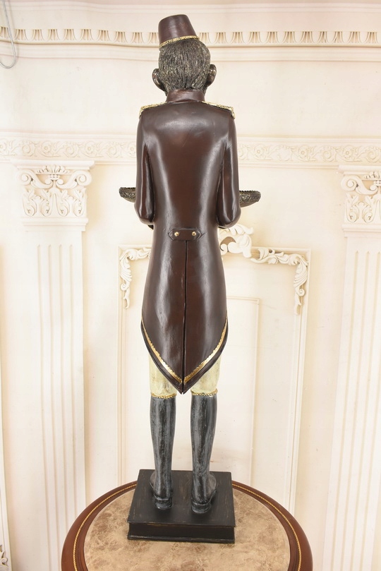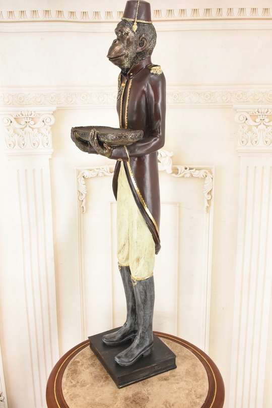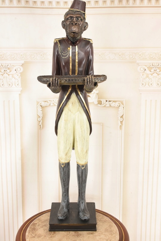 Przedmiotem sprzedaży jest duża figura z tworzywa przedstawiająca małpę w stroju lokaja z tacą.