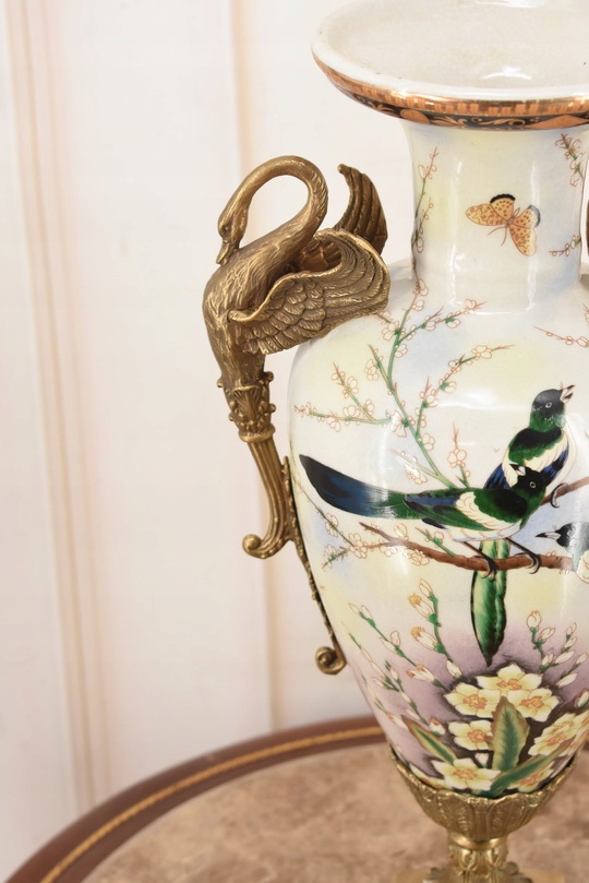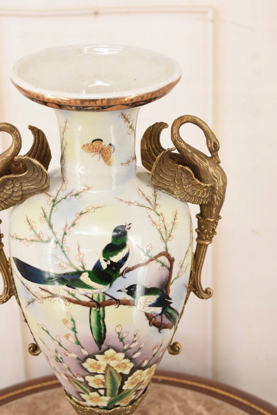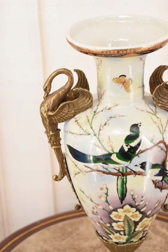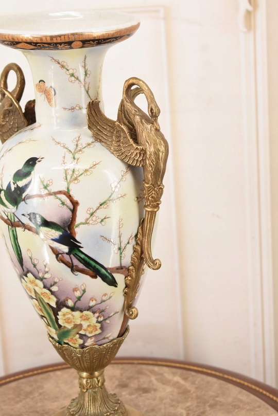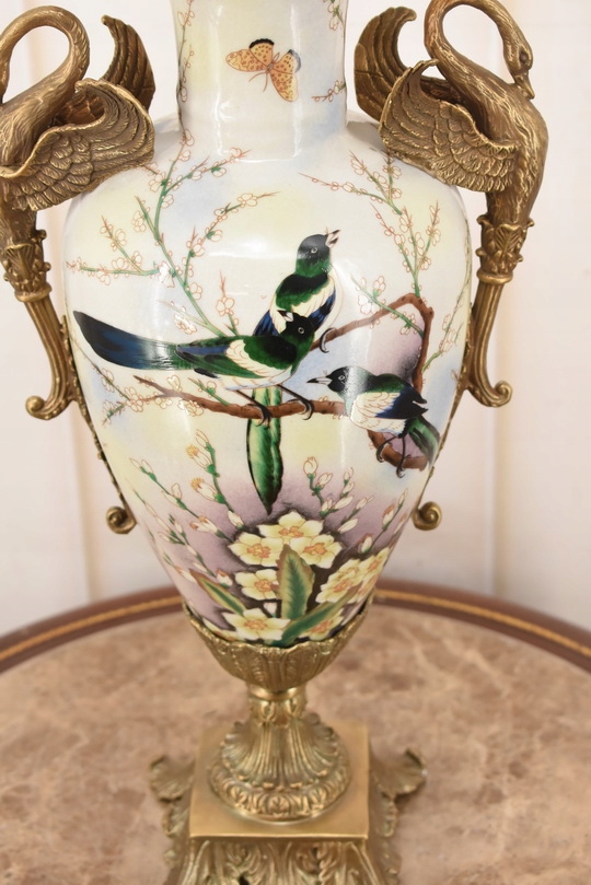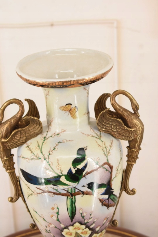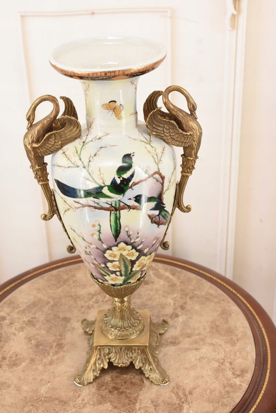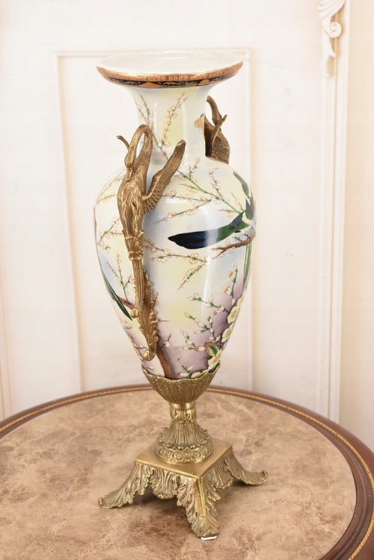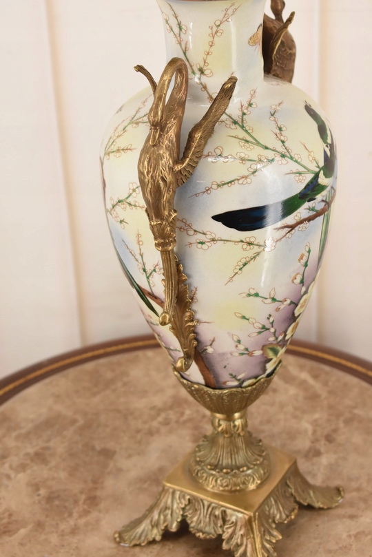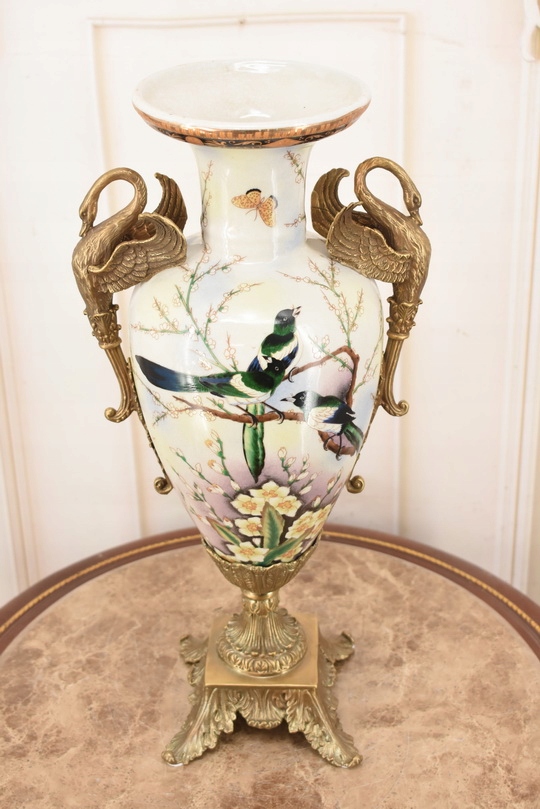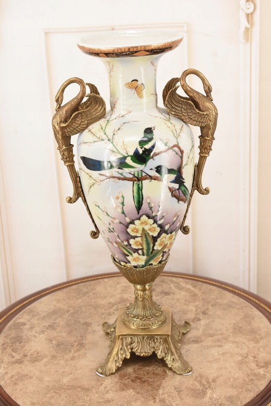 Witam, w dniu dzisiejszym pragnę zaoferować Państwu muzealną porcelanową wazę. Waza okuta brązem, piękne zdobienia z brązu w rzeczywistości są duże piękniejsze niż na zdjęciach.