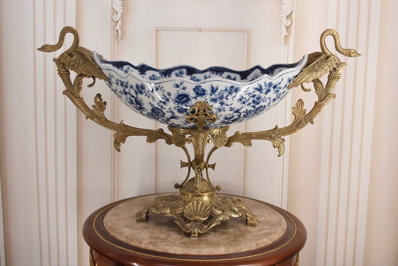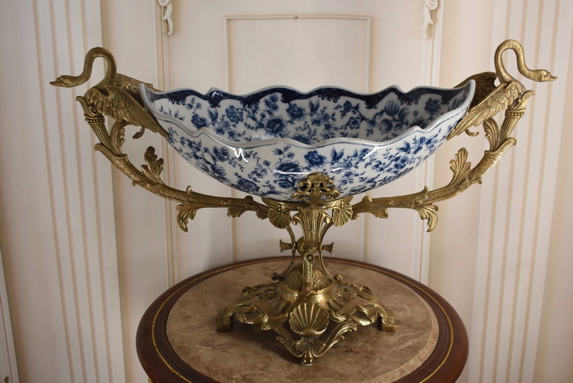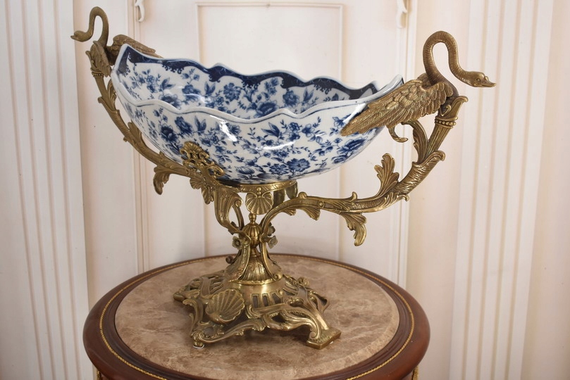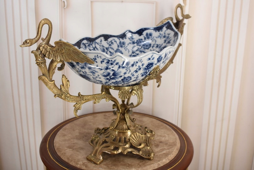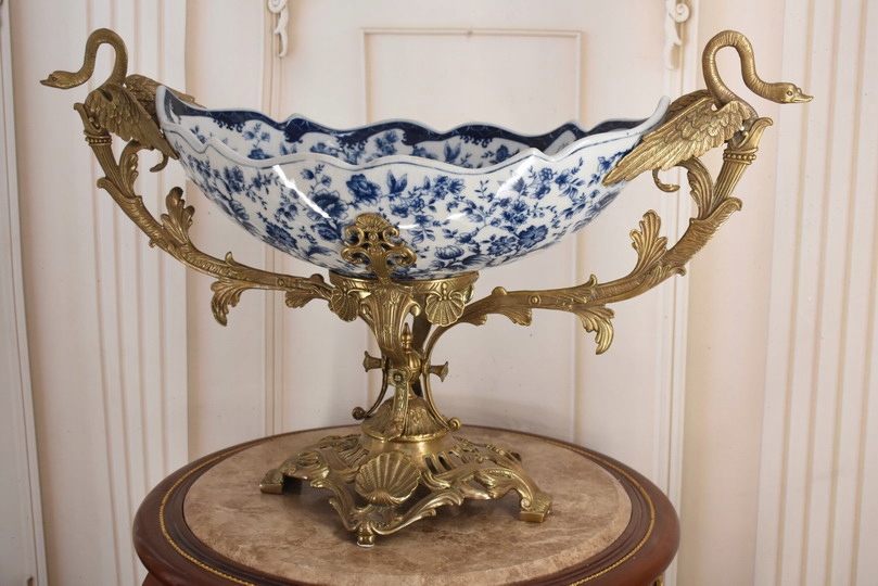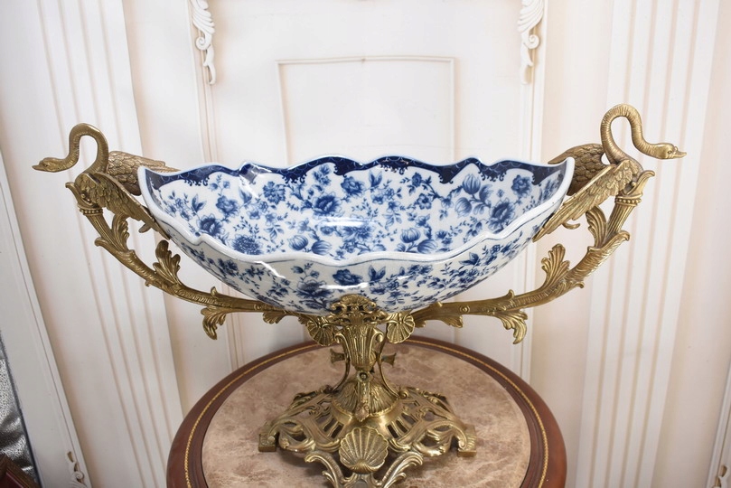Witam, w dniu dzisiejszym pragnę zaoferować Państwu przepiękną paterę wykonaną z porcelany okutą brązem.