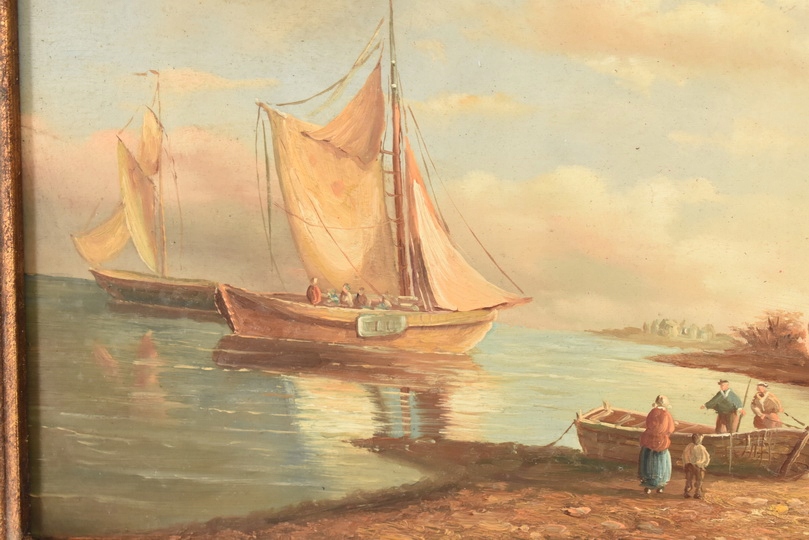 Okręty Wpływające do Portu - Statek Łodzie - Obraz Olejny Marynistyczny