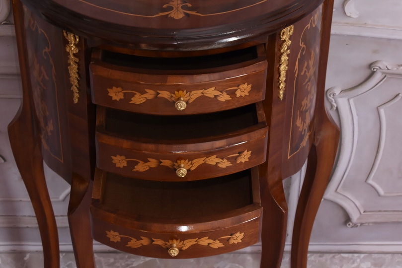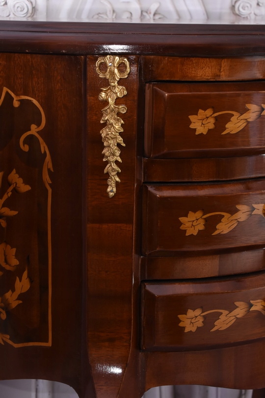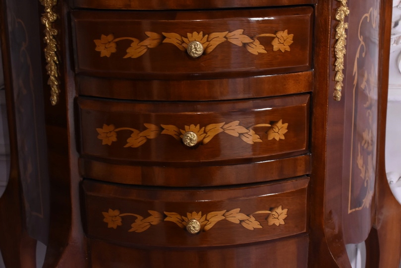 Przedmiotem jest niesamowicie piękna drewniana francuska komoda z szufladami.