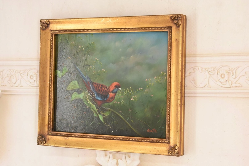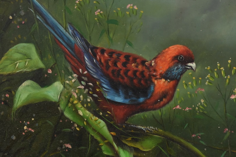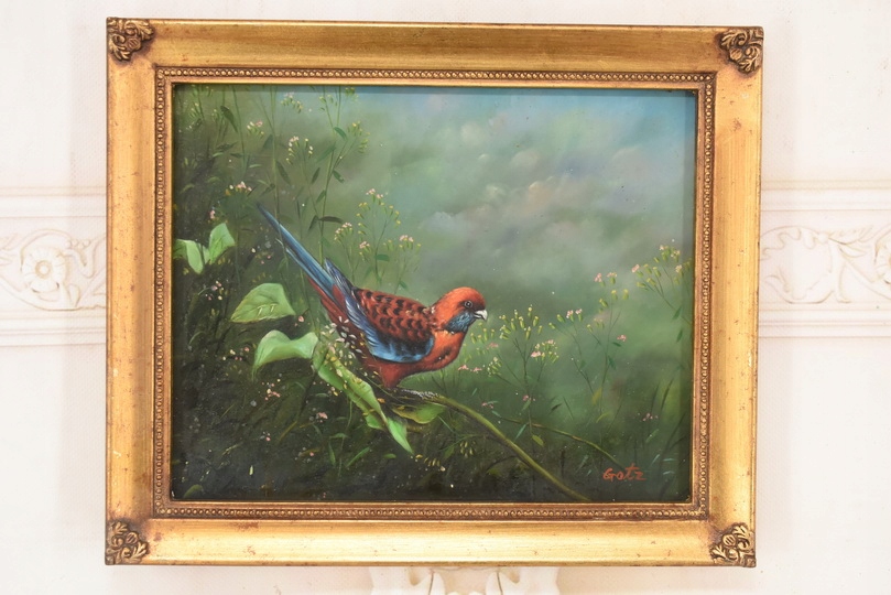 Strona główna » Kolekcje i sztuka » Sztuka » Reprodukcje i przedmioty stylizowane » Malarstwo » Piękna Kolorowa Papuga Na Gałęzi - Obraz Olejny - Złota Zdobiona Rama