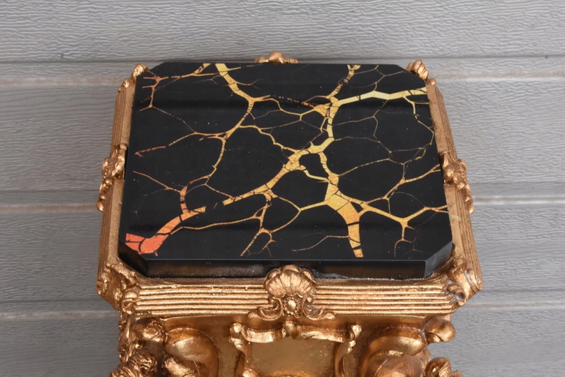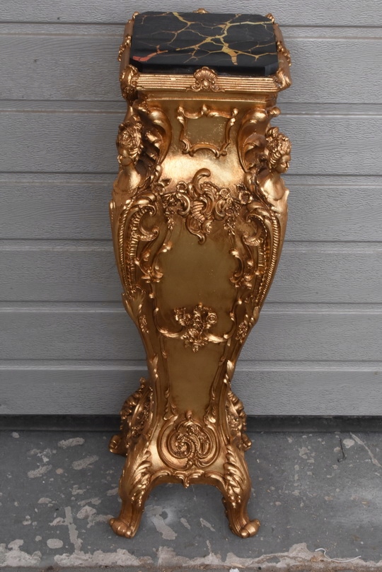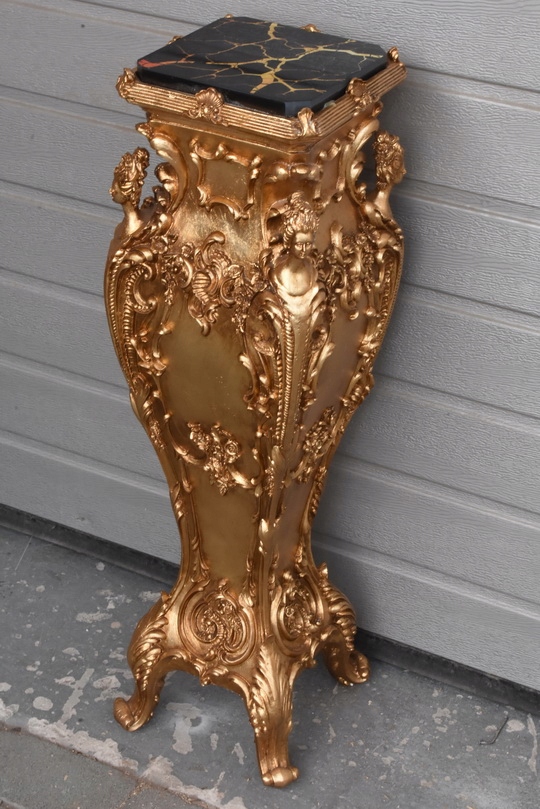 Francuska Pałacowa Kolumna – Postument / Kwietnik w stylu barokowym ze złotymi zdobieniami