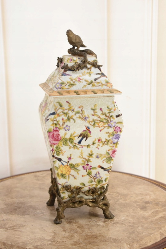 Witam, w dniu dzisiejszym pragnę zaoferować Państwu przepiękną wazę wykonaną z porcelany okutą brązem.