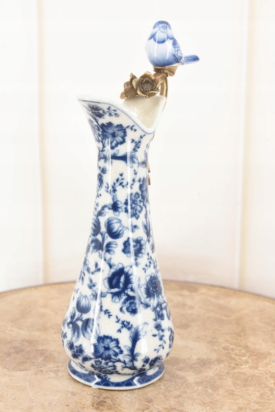 Porcelanowa Karafka - Okuta Brązem Brąz - Kwiaty i Ptaki - Sygnowana
