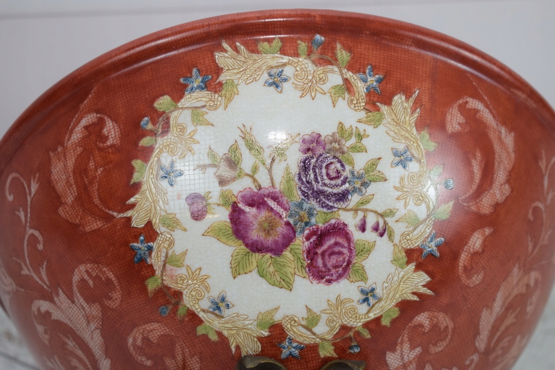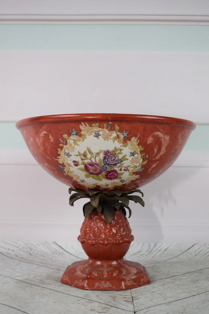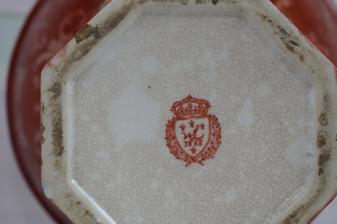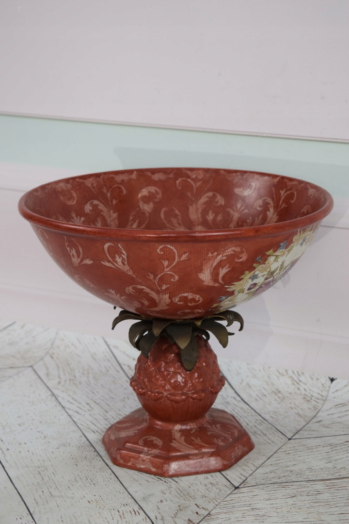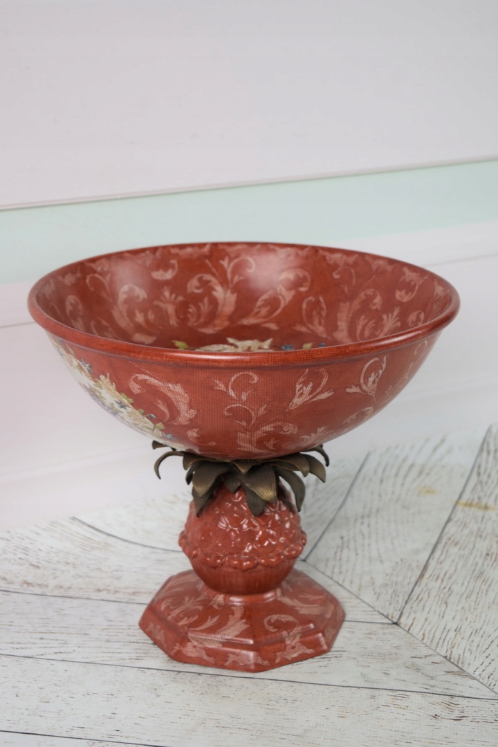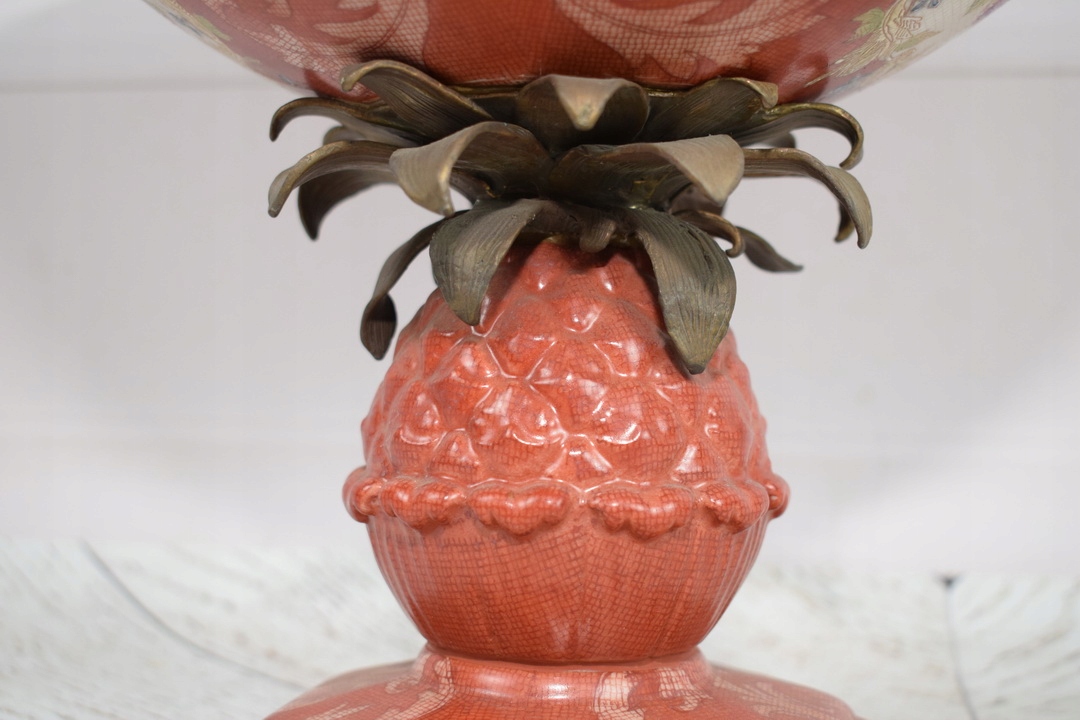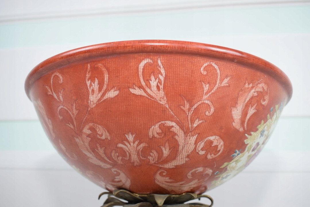 Porcelana Czerwona Waza Amfora Puchar Okuta Brązem - Unikat