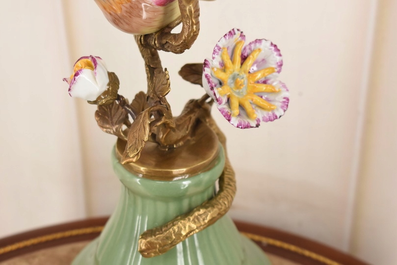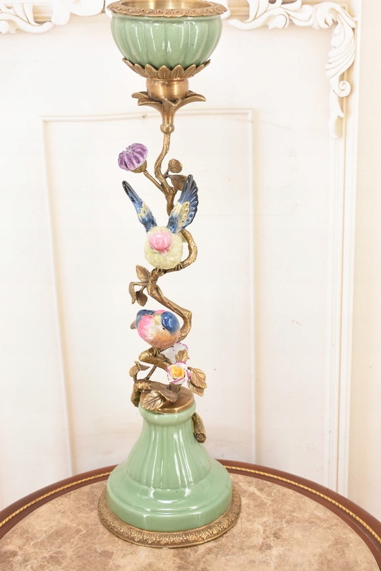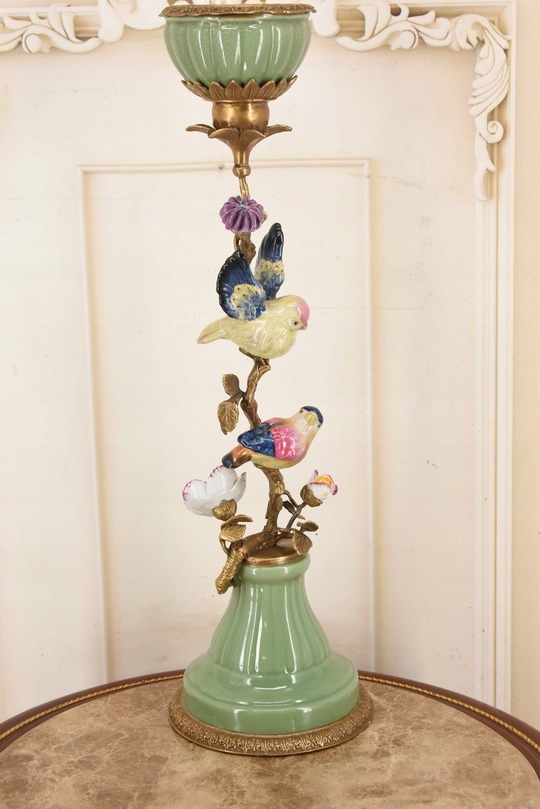Witam, w dniu dzisiejszym pragnę zaoferować Państwu przepiękny świecznik wykonany z porcelany zaś świecznik i zdobienia z brązu.